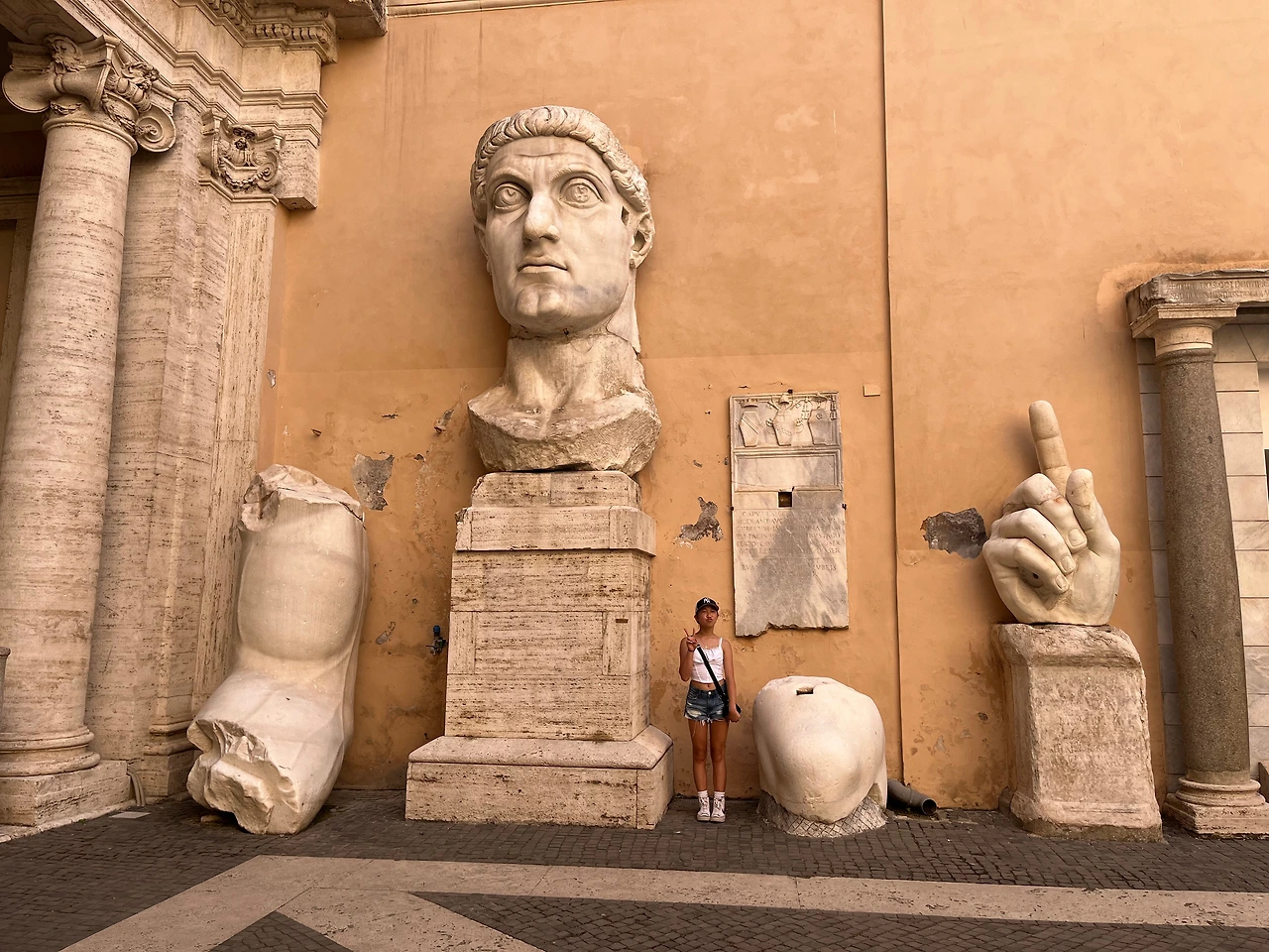 뮤지엄에 들어서면 자그마한(? 이미 사이즈에 대한 감이 없어짐) 중정이 있고 미술사 책에 나오는 콘스탄티누스 대제의 조각이 툭툭 놓여있다(진짜 둘 데 없어 대충 기대어 세운 것처럼 늘어서 있다). 원래는 포로 로마노에 있던 것을 옮겨왔다고 하니 그럴 법도 하겠지만 부분으로 나뉜 석상의 일부만 봐도 그 규모가 놀랍다. 크고 높은 곳을 향한 인간의 열망은 바벨탑의 시대로부터 하나도 달라지지 않았다. 오히려 온갖 모습의 성취를 향한 욕망은 더 정교해지고 집요해졌다. 엄청난 규모에 혀를 내두를지언정 결국 조각으로 남은 영광의 흔적에서 오늘을 살아가는 탐욕의 결과가 겹쳐 보인다.