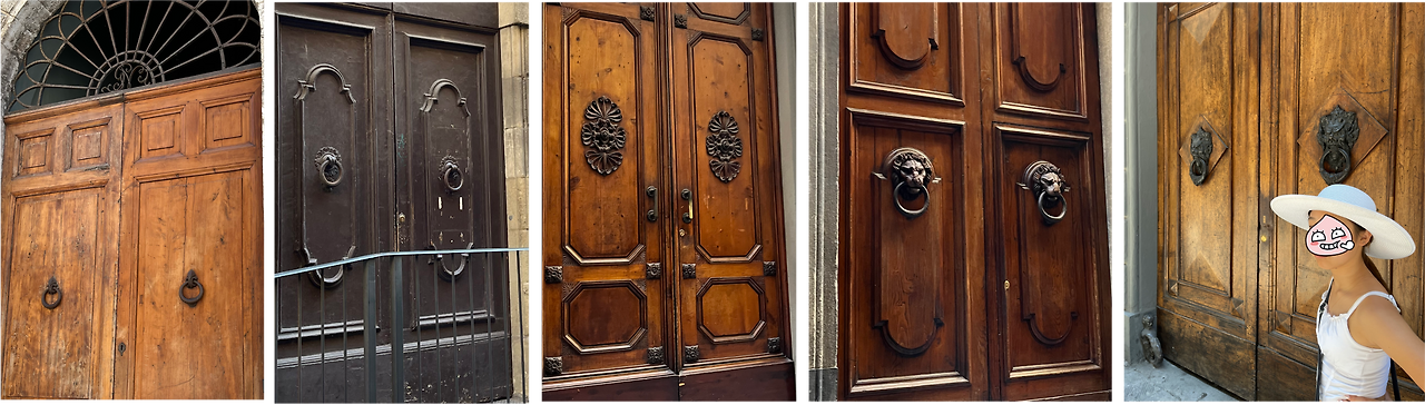 1. 피렌체의 골목에선 유독 눈에 띄는 게 있다. 대문의 문고리 장식이다. 예로부터 금속 공예가 발달했기에 단단한 금속으로 제작된 문고리는 보통 동물이나 가문의 문장을 활용해 세공되었는데 장인의 도시답게 그 디테일이 남다르다.