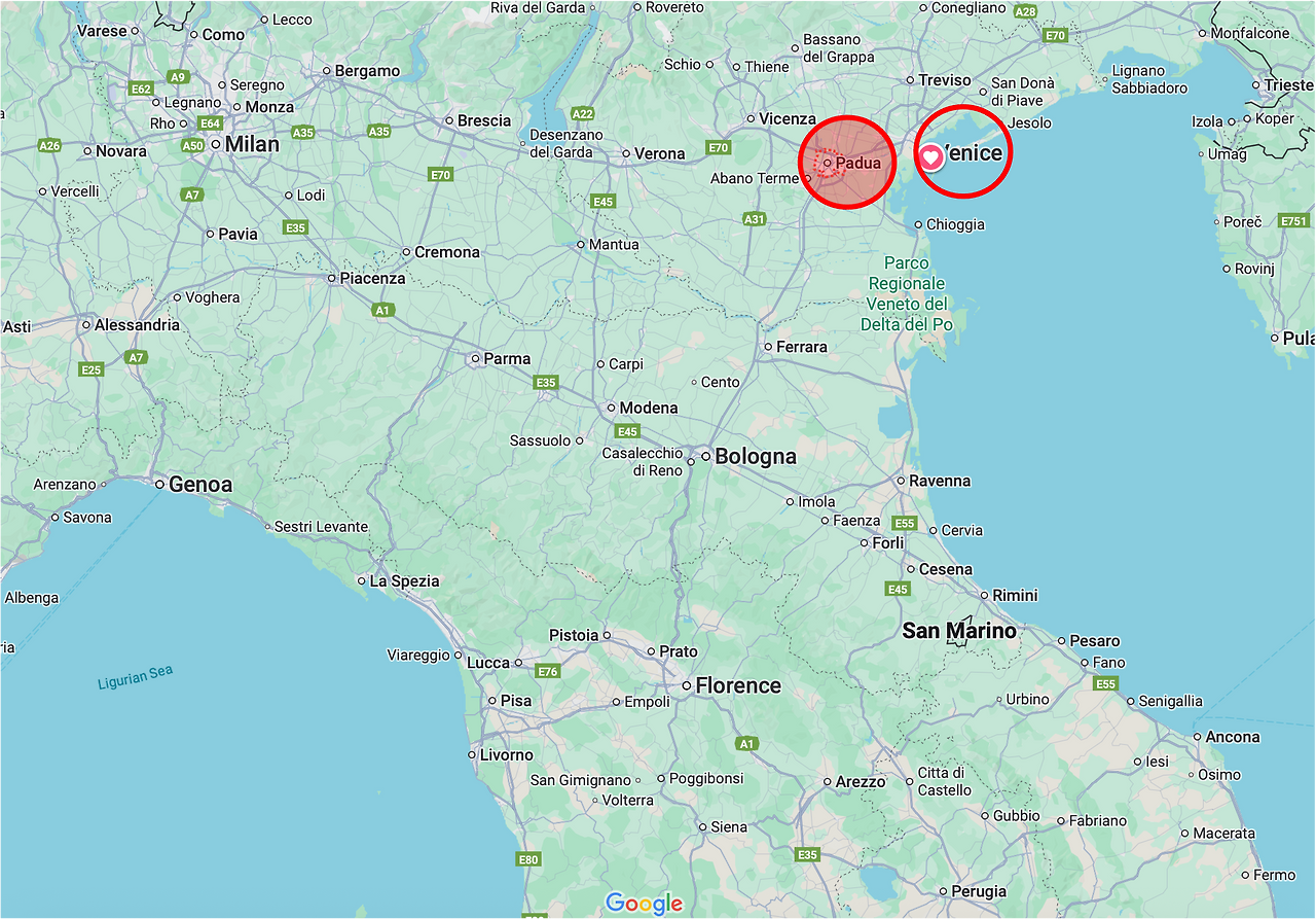 지명 표기: Padova(이탈리아 발음으로는 빠-도-바)는 영어로는 Padua로 쓴다. 이전글과는 달리 Padova라는 현지 지명은 상대적으로 덜 알려졌기에 보편적으로 쓰는 영어 지명인 Padua로 쓰겠습니다.