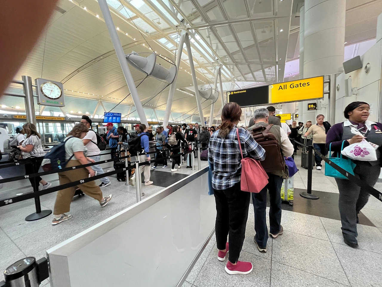보안 점검(Security Check) 줄이 말도 안 되게 길다. 검색대 입구 앞에서 인사하고 포옹하고 갖은 이별 세레머니 다 한 후 들어오면 쭉쭉 검색대로 가서 신발 벗고 여행자 모드 바꿔 끼는 게 아니었던가? 입구를 들어서자마자 최소한 서너 겹은 겹겹이 서서 매의 눈으로 지켜보는 보안 요원의 눈을 피해 새치기를 하는 인간들까지... 코로나 이후 보복 관광이라는 말을 눈으로 확인할 수 있었다. 난리통의 검색대를 지나 게이트 앞에 서니 정확히 7:35 보딩 타임이었다.