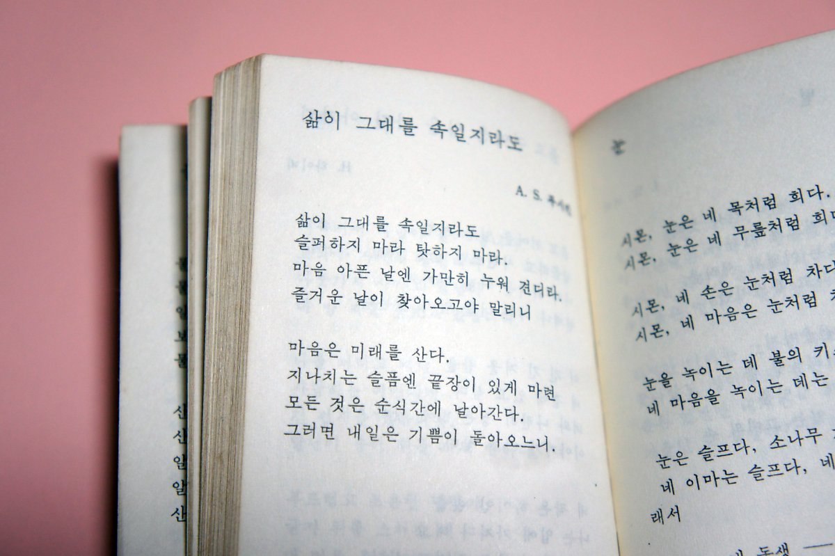생각해 보니 학창 시절 다이어리에, 그러니까 명언이나 시가 인쇄되어 있는 그런 다이어리에서 <삶이 그대를 속일지라도>를 본 적이 있다. 하지만 지금 와서 감상하려고 보니 다른 책에서 찾을 수 없다가, 혹시나 이 책에 있을까 하여 넘겨보니 역시 발견하게 된 것이다.