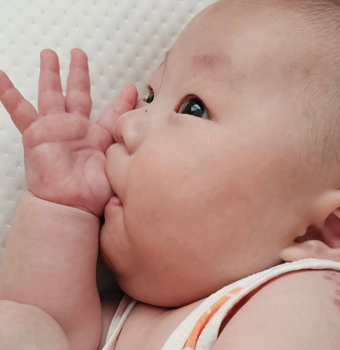 아기는 사람을 알아보고, 시선을 맞추고, 고개를 돌리고, 두 팔을 벌리고, 웃어주면 활짝 웃고, 먹으면서 방귀 뀌고, 거대한 트림을 내뱉고, 사람의 살결이 닿아야 잠을 잔다. 온전한 사람이 되어가고 있는 것 같다.