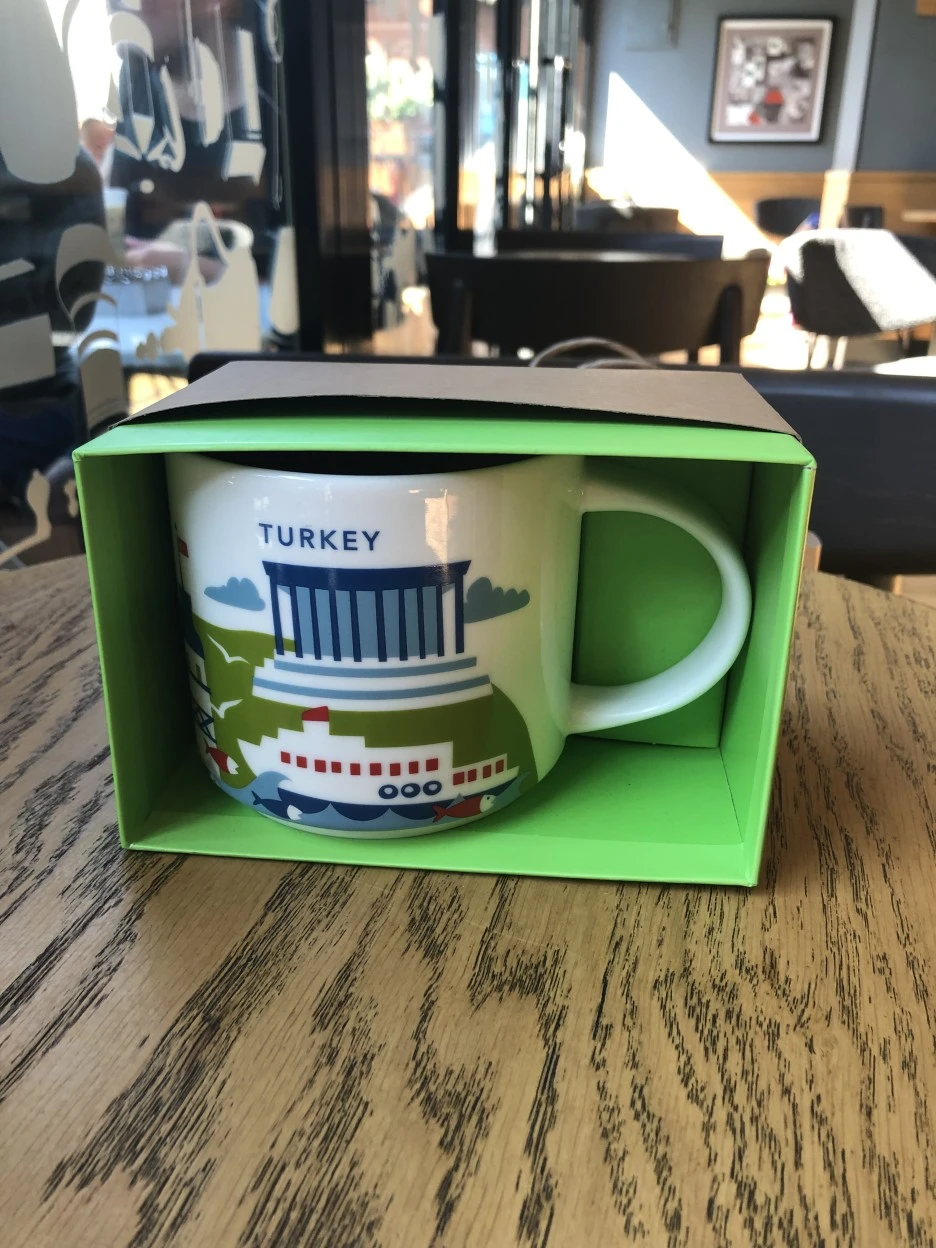 조식 뷔페에서 커피를 이미 마셨던지라 그냥 쿨 라임을 선택했다. 탁 트인 바다를 보니 왠지 상큼하고 시원한 쿨 라임이 당겼다. 터키 리라 환율이 많이 떨어진 상태라 음료값과 시티 머그도 가격이 굉장히 저렴했다. 물건을 많이 사지 않으려고 노력 중인데 한화 약 만 원 정도밖에 안 하길래 오랜만에 스타벅스 머그컵도 구매했다.