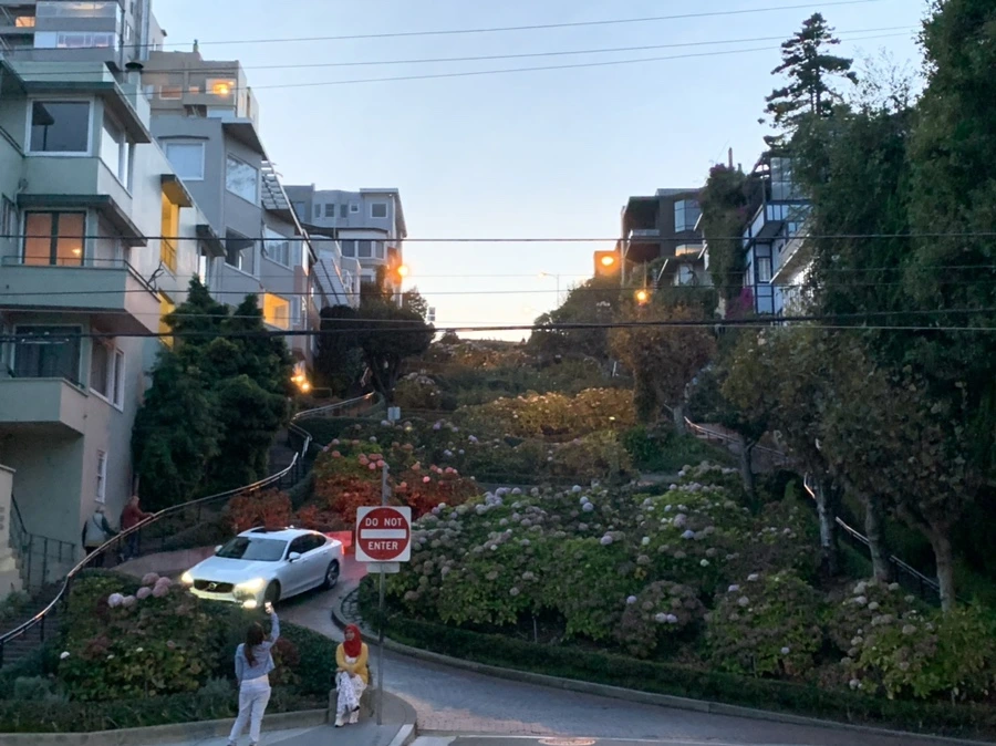 내가 <인사이드 아웃> 영화를 재미있게 봤다고 했더니 근처에 영화에 나온 롬바드 스트리트가 있다고 하여 구경하러 갔다. 엄청난 경사를 자랑하는 구불구불 찻길에 예쁜 꽃들이 심어져 있는 모습이 인상적이었다. 구불구불한 길을 엉금엉금 내려오는 자동차의 모습도 재미있었다.