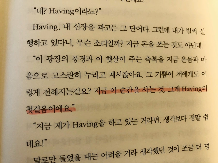 지금 이 순간을 사는 것, 그게 Having의 첫걸음이에요.