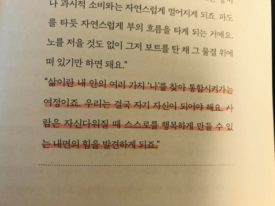 삶이란 내 안의 여러 가지 '나'를 찾아 통합시켜가는 여정이죠. 우리는 결국 자기 자신이 되어야 해요. 사람은 자신다워질 때 스스로를 행복하게 만들 수 있는 내면의 힘을 발견하게 되죠.