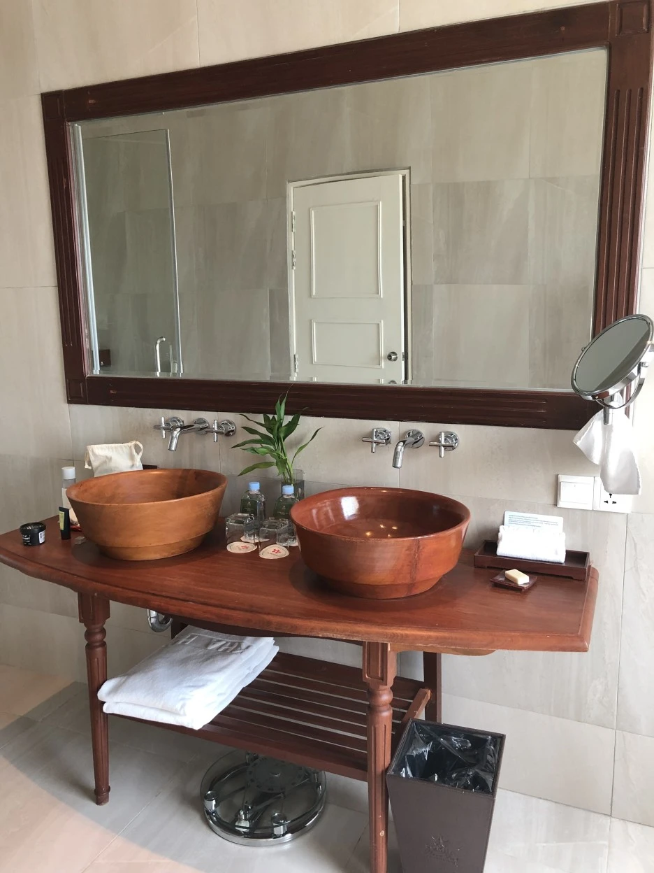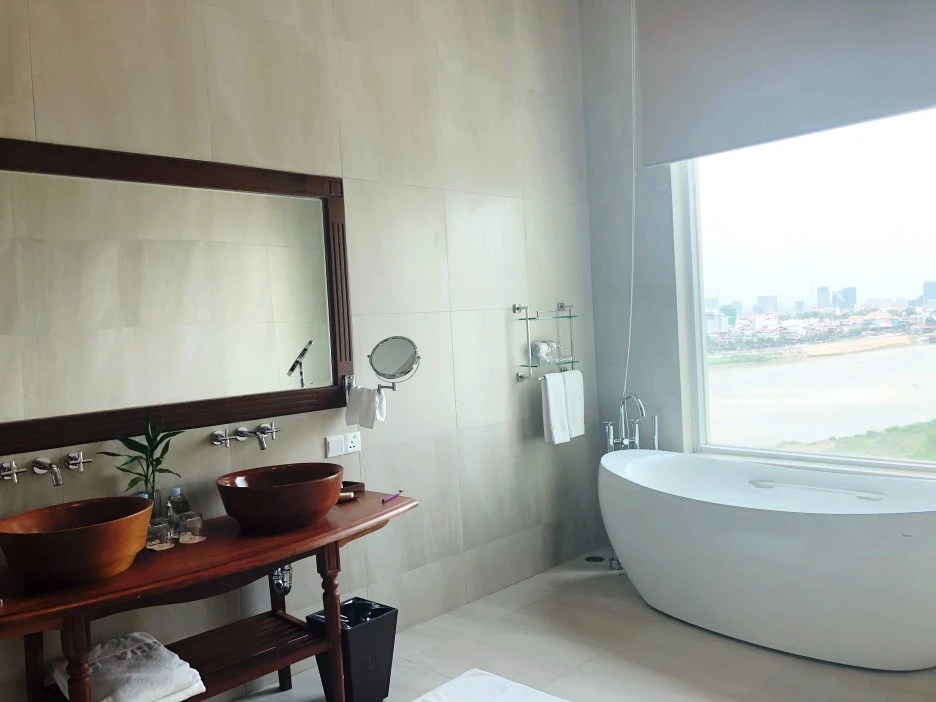 가장 인상적이었던 곳은 바로 화장실! 거짓말 안 보태고 우리 집 안방보다 훨씬 큰 화장실의 나무 세면대가 눈에 띄었다. 큰 창을 통해 강을 바라볼 수 있는 고급스러운 욕조, 그리고 동작 센서를 인식해서 사람이 근처에 가면 자동으로 커버가 올라가는 변기까지 모든 게 마음에 들었다.(차마 변기 사진은 찍지 못했다. 그리고 자주 오작동을 하는 바람에 나중엔 조금 무섭기도 했다)