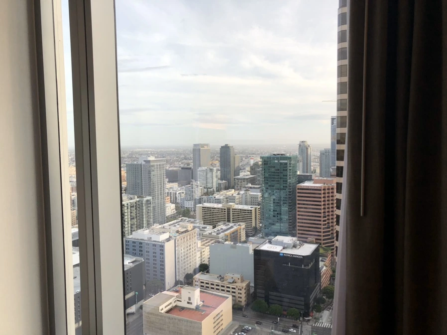 요새 우리의 최애인 LA 호텔은 얼마 전 새로 지어진 곳이라 굉장히 최신식이고 쾌적하다. 특히 이곳은 층이 높아서 뷰가 참 좋다. 호텔이 좋으면 그 스테이션으로 비행을 가는 것이 즐겁다.