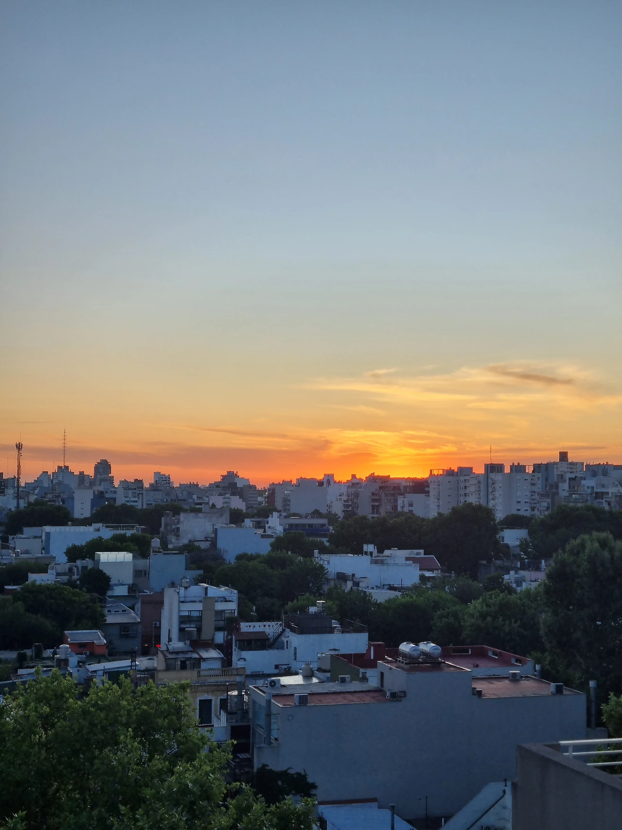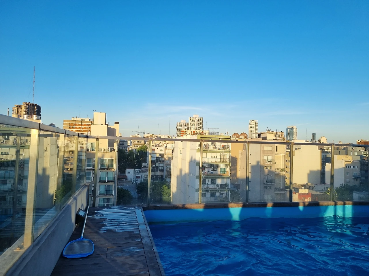 경기가 끝나고 친구네 집 옥상에서 본 수영장과 노을. 보통 요즘 지은 괜찮은 아파트 옥상에는 수영장이 있다.