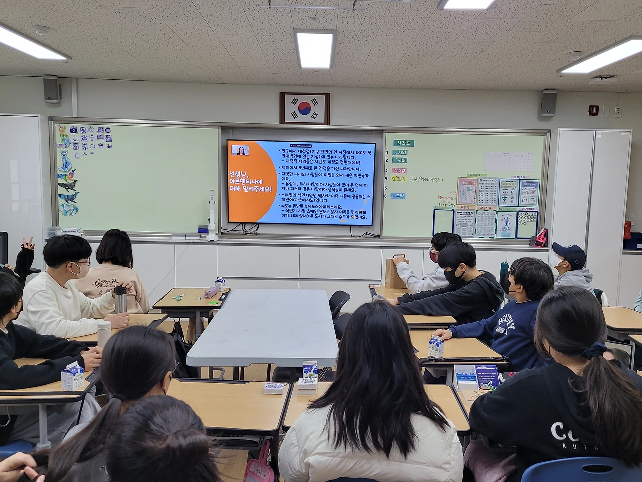 한국에 있는 내 소속교의 6학년 학생들과 줌 수업으로 아르헨티나 살이와 문화에 대해 소개했다. 시차 문제로 한밤중에 수업했는데 아이들은 재미있게 잘 들어주었다.