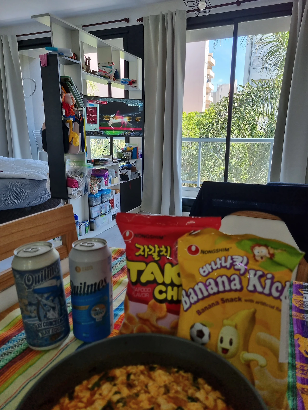 어제 봤던 아르헨티나 대 호주 16강전. 끝까지 투지 잃지 말고 잘 올라가라는 마음으로 문어맛 자갈치 과자와 바나나킥, 그리고 킬메스 맥주로 응원 ㅋㅋㅋㅋ