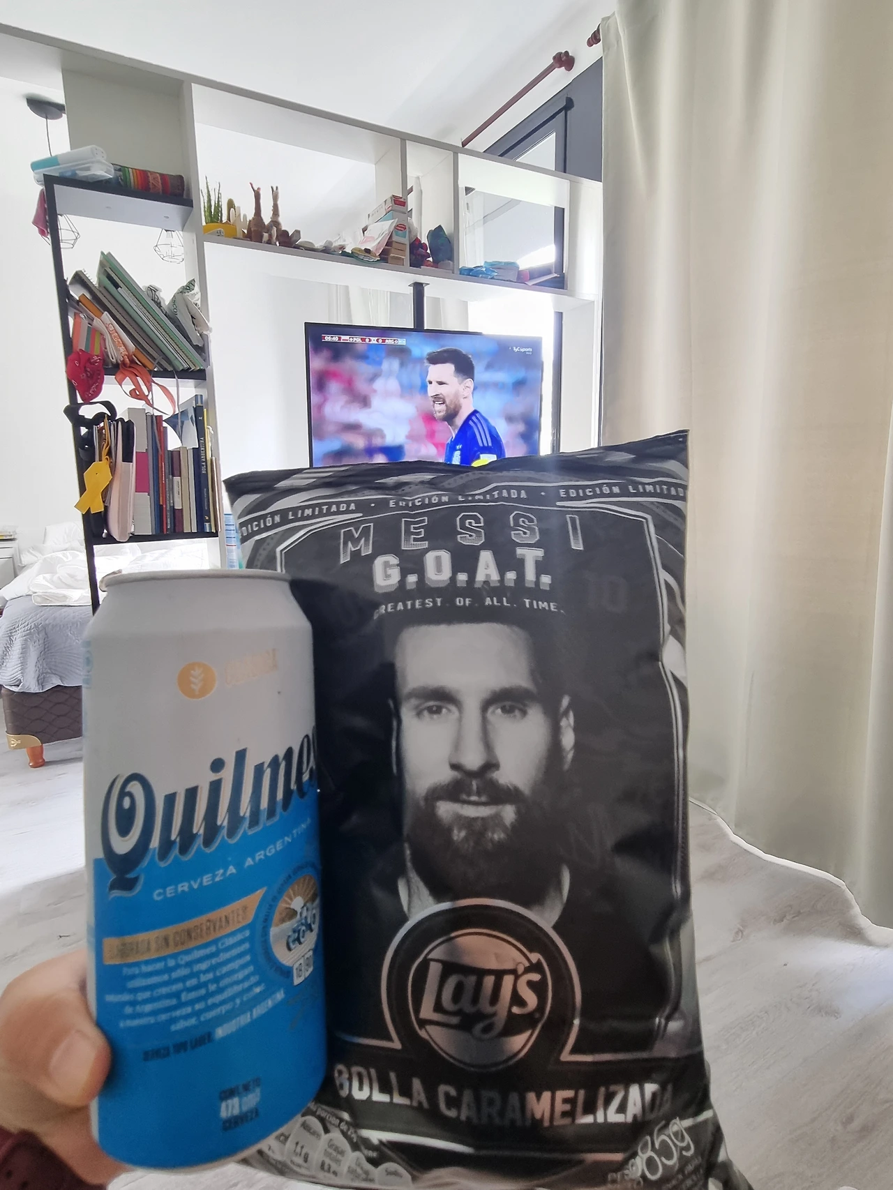집에서 챙겨본 아르헨티나 조별리그 마지막 경기. 동갑내기 친구 메시를 응원하는 마음으로 메시가 그려진 Lays 과자와 킬메스 맥주로 응원했다.