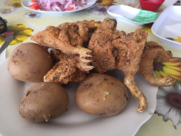 오랜 시간 기다림 끝에 꾸이 요리 Cuy frito 는 사지를 분열하여 튀겨져서 나왔다. 꾸이를 먹기 전에 먹기 전에 "너를 먹어서 미안하다" 며 꾸이의 손(발)을 잡고 악수를 해서 좌중을 웃기는 등 즐거운 시간을 보내고 있었다. 문제는 그 다음이었다.