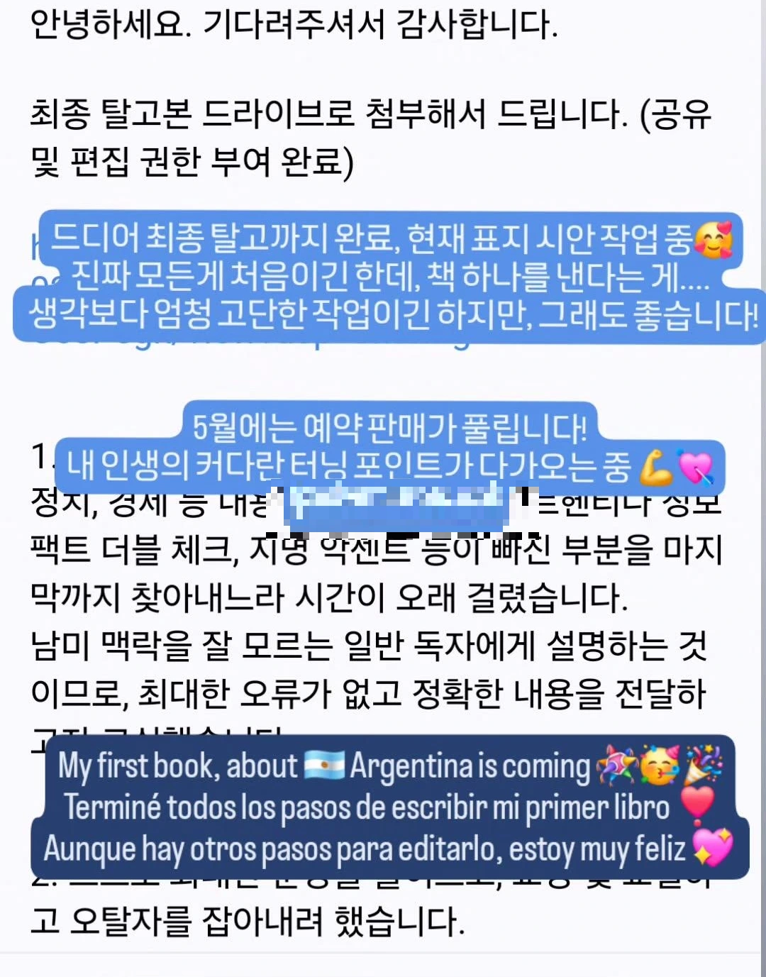 이미 모두가 알고 있듯 지구 반대편 아르헨티나에 대한 정보와 그곳에서의 삶이 책이라는 형태로 나오는 건 귀한 편이라, 내 친구가 이야기한 대로 내 책이 당분간 아르헨티나의 바이블 같은 역할을 할 수도 있다.