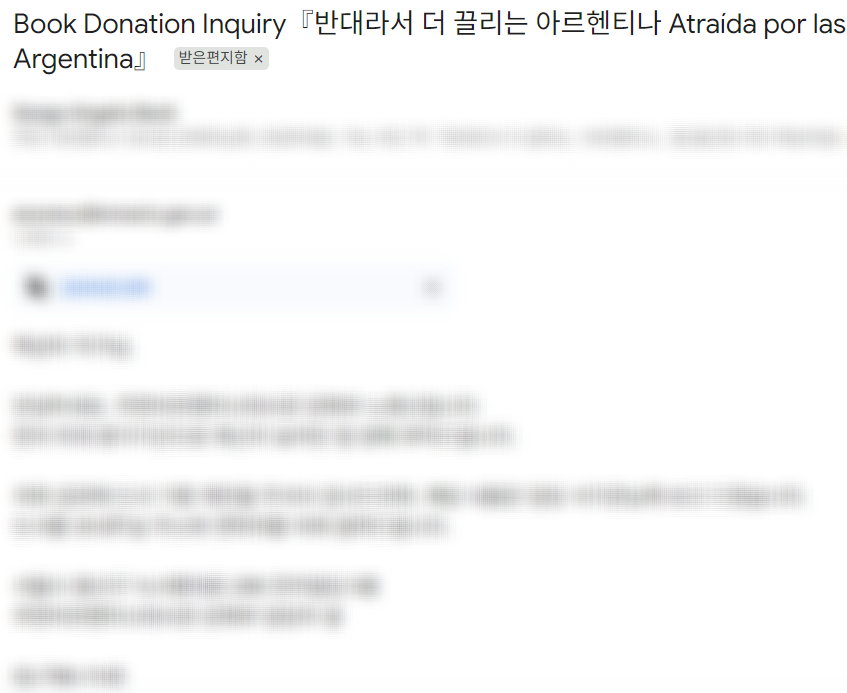 함께 협업을 준비하는 작가님께, 한국에 있는 아르헨티나 대사관에 홍보차 내 책을 기증해보는 것도 좋겠다는 조언을 들었다. 쇠뿔도 단김에 빼랬다고 바로 대사관에 메일을 보냈다.