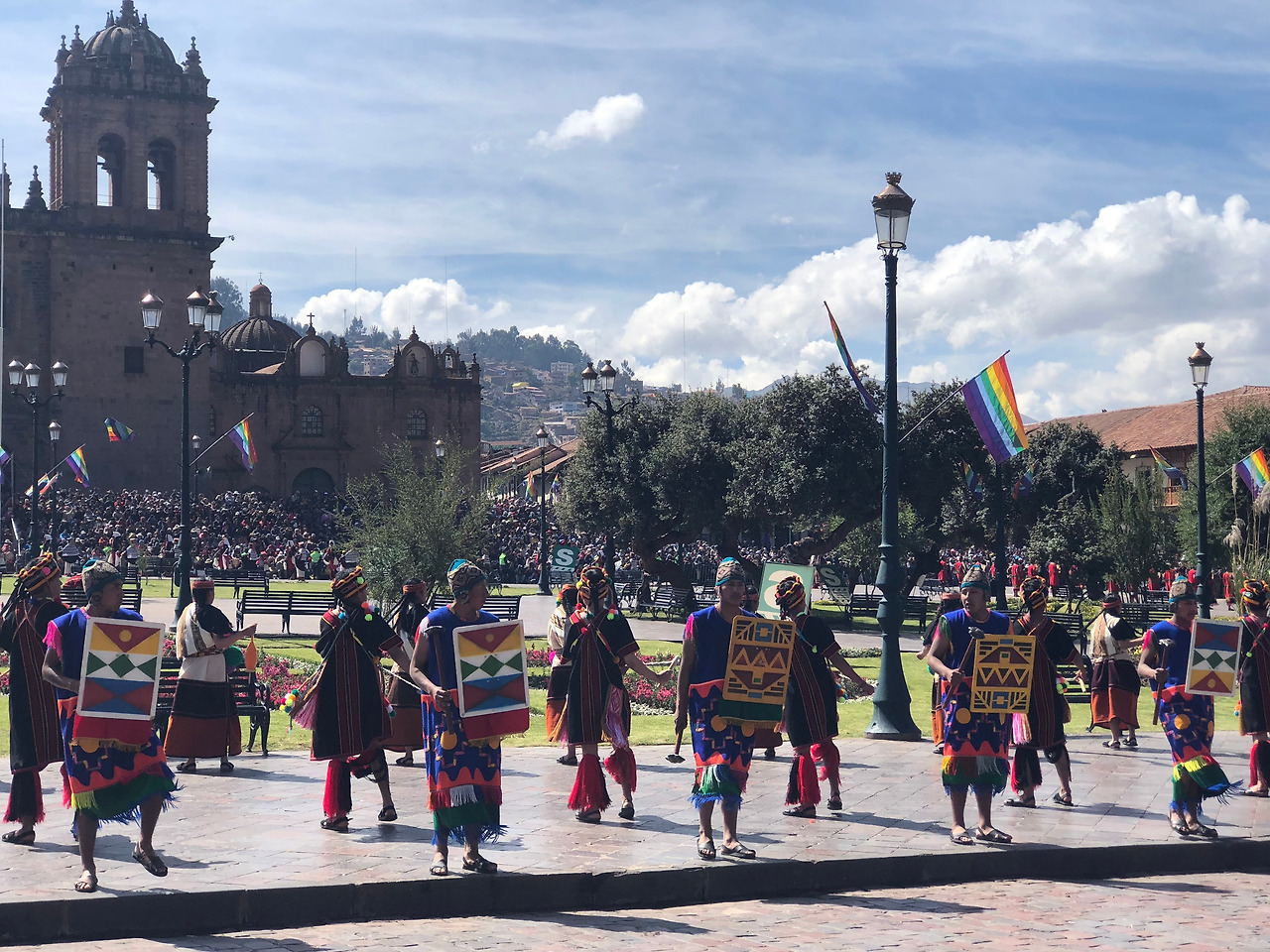 삭사이와만에서 본 행사가 열리기 전에 아르마스 광장에서도 간단한 의식을 보여주었는데, 댄서들과 배우들이 보여주는 박력있는 춤사위와 강렬한 모습에 - 저걸 실제로 보면 얼마나 멋질까 가슴이 두근대기도 했다.
