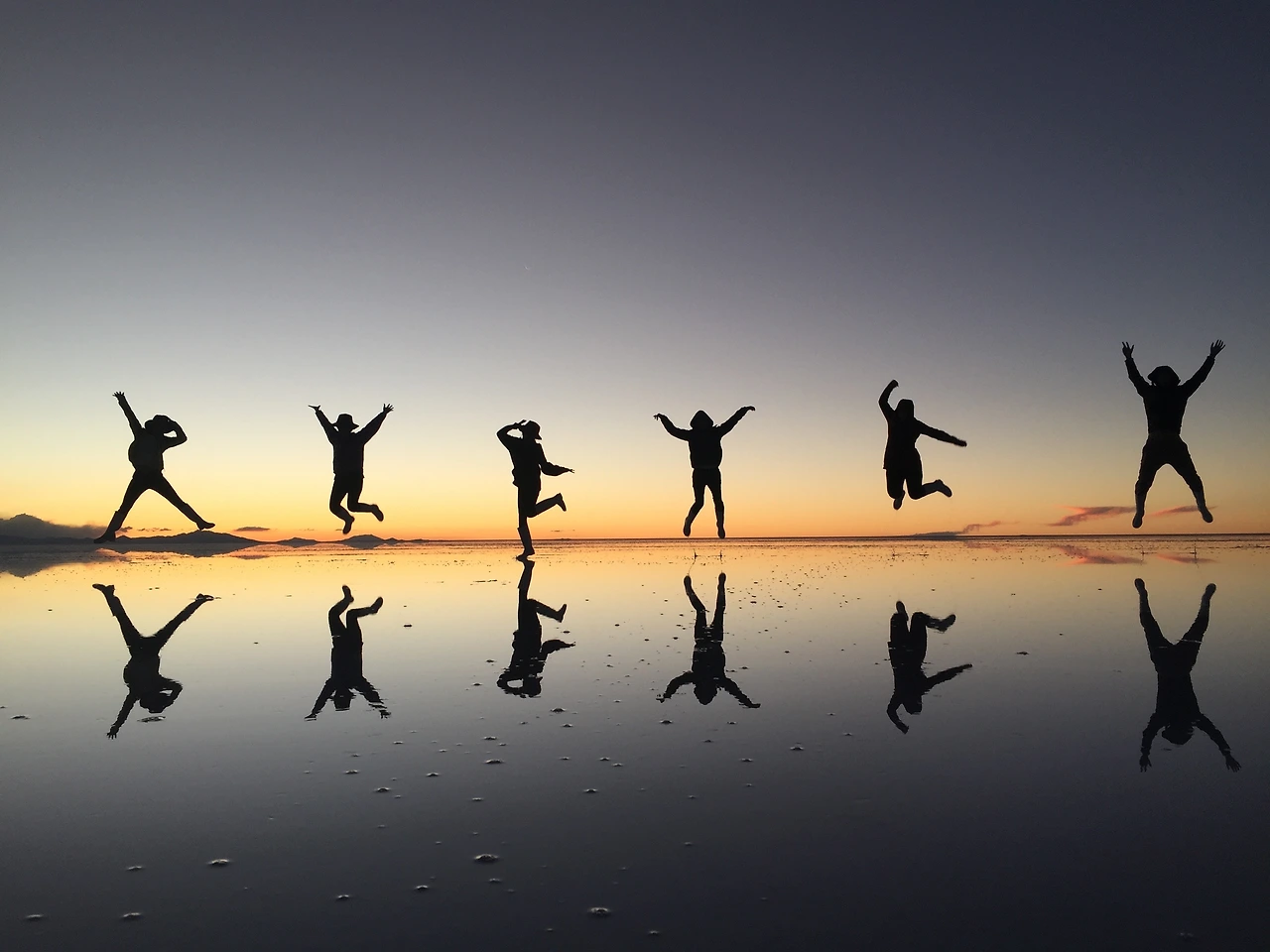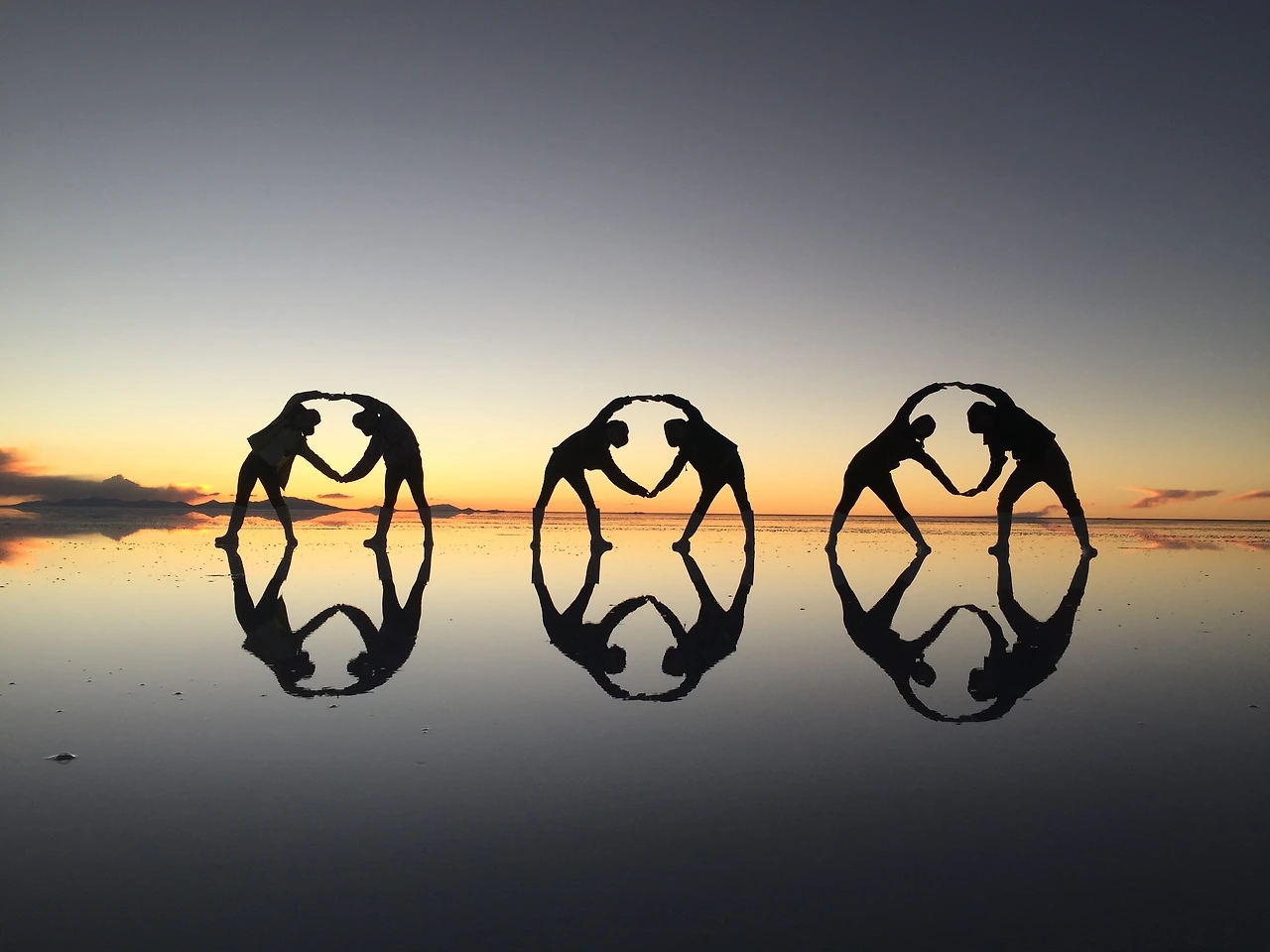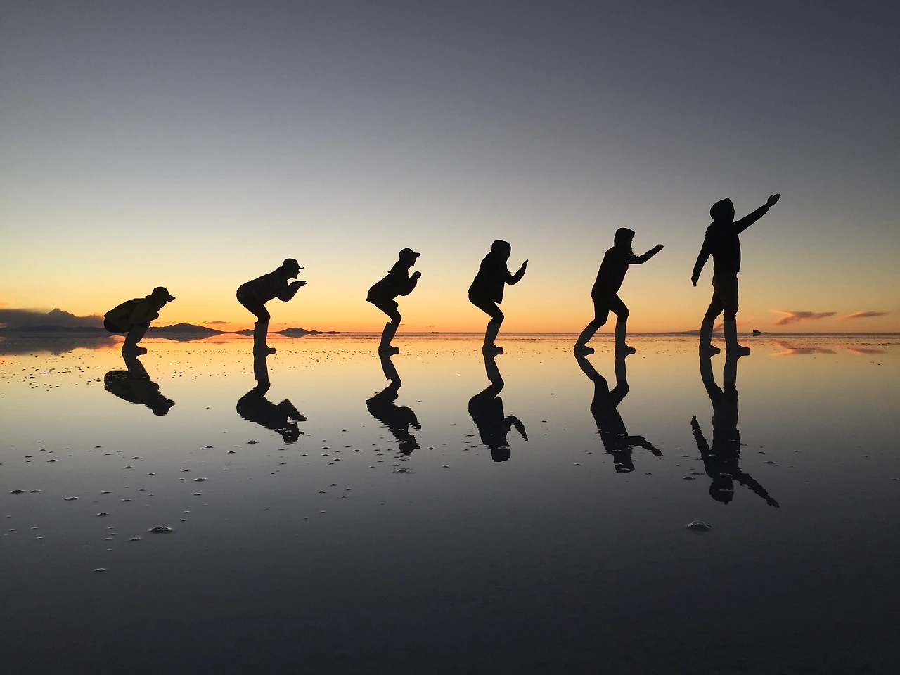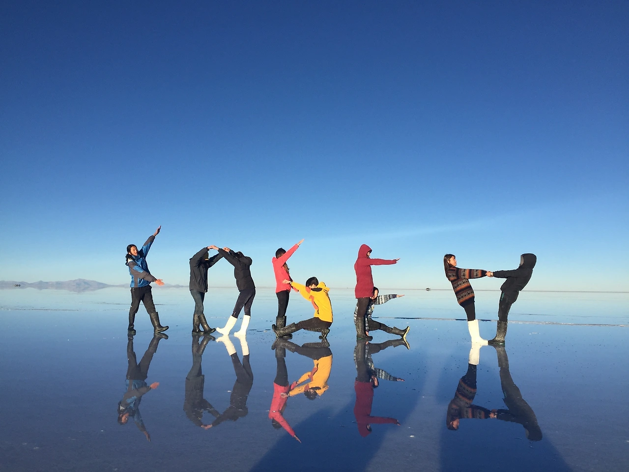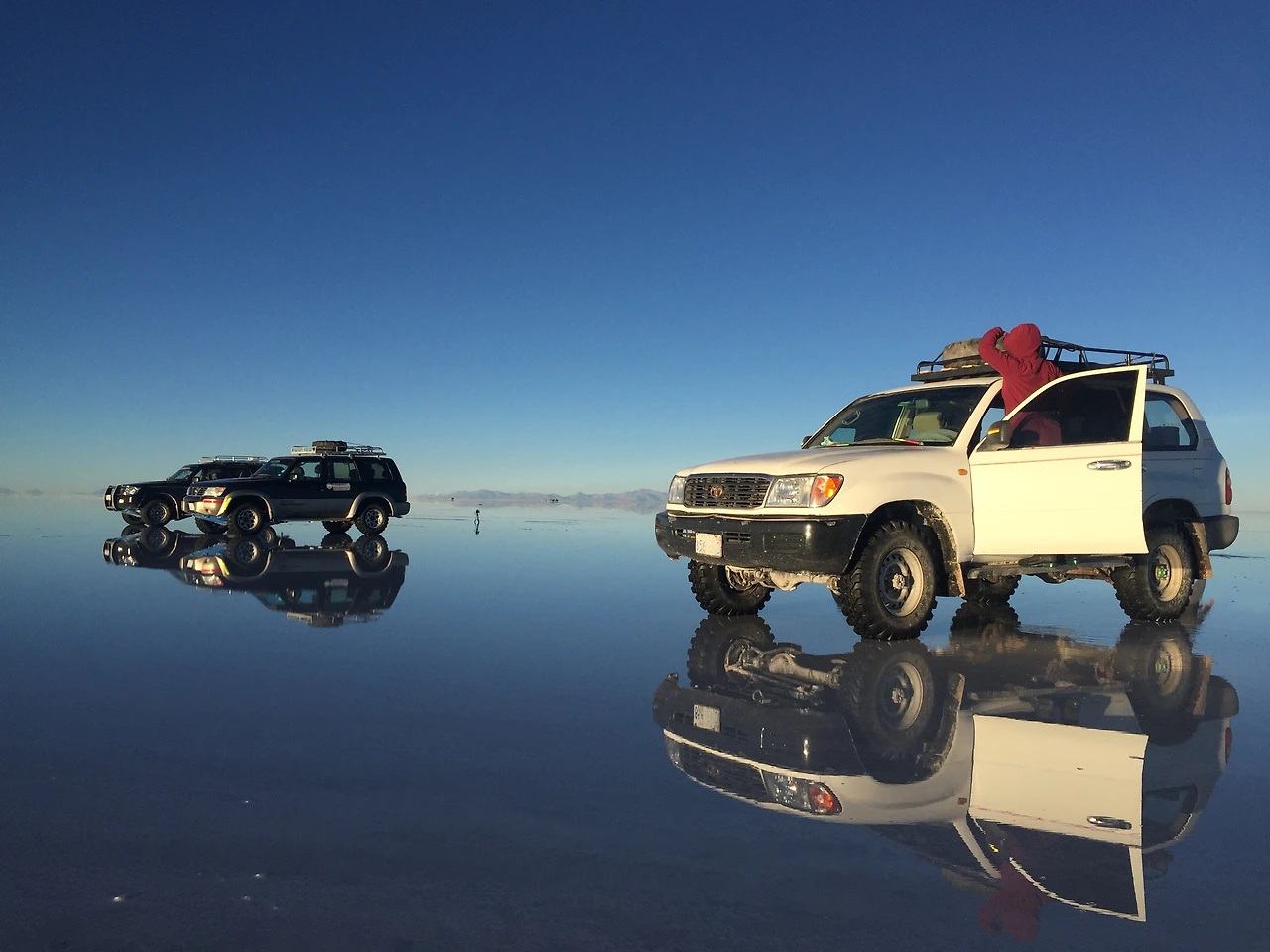 흰 소금 사막 위에 얕게 떠 있는 물이 거울처럼 반사되는 걸 이용해 재빠르게 움직이며 다양한 사진을 찍고 나니, 피곤하긴 해도 무척 재미있었다. 이것도 운이 좋았던 게, 우리가 새벽 투어한 그날 이전에는 며칠 동안 밤마다 비가 와서 투어가 모조리 취소되었다고 한다. 아타카마에만 비가 내린 게 아니라, 그동안 우유니 역시도 마찬가지였던 것이다. 역시 모든 인생사는 새옹지마다.