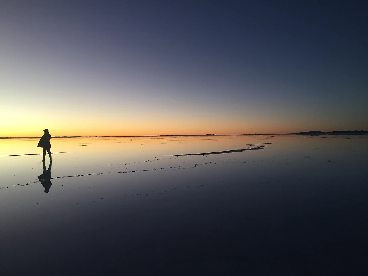 구름이 낮게 떠 있는 하늘빛 우유니는 내가 여행 잡지와 인터넷 사진 속에서 본 풍경 그대로였다.