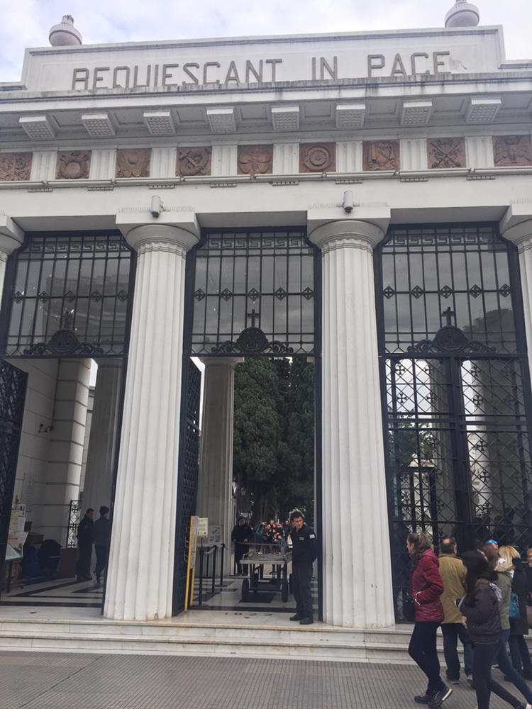 보통 관광객들은 아르헨티나의 국모 에바 페론, 애칭으로 에비타의 묘지를 보기 위해 오는데 나는 에비타의 묘지보다는 그 주변의 고양이들과, 내가 우연히 보게된 한 해군 노병의 장례식이 더 기억에 많이 남는다.