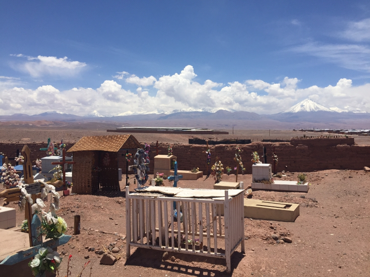 안데스 산맥과 칠레 옆을 흐르는 해류의 영향으로 지구에서 가장 건조하며 대기가 안정된 곳이라는 칠레 산 페드로 데 아타카마. 그 메마른 마을에서 한칸 벗어난 곳이 공동 묘지가 있다. 이곳에서는 서양권에서 보기엔 다소 특이한 문화가 있는데 - 묘지 한 켠을 꾸며 생전에 그 사람이 좋아하던 것을 놓아준다고 한다. 마치 과거 이집트에서 사람이 죽으면 그 사람이 좋아하던 것들을 무덤에 놓던 것이나, 우리나라 유교 문화에서 제사를 지낼 때 돌아가신 분이 좋아하던 음식을 놓아주던 것과 맥락이 같은 것 같다.