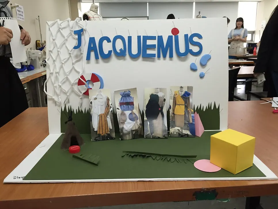 나는 오프라인 전시를 위해 작은 미니어처를 제작하게 한다. 공간에 대한 이해가 부족한 학생들이 디스플레이가 전시공간에서 어떻게 보일지 알아보기 위해서는 미니어처가 가장 좋은 방법이다. 3D 시뮬레이션을 해볼 수도 있지만 전공분야가 아니어서 표현에 한계가 있다. 따라서 우드락으로 전시공간 모형을 만들고, 그 안에 마네킹에 입힌 작품 사진을 프린트해서 배치하고, 소품들과 벽 디스플레이도 만들어서 배치해 보면 공간이 어떻게 보일지 감이 잡힌다.