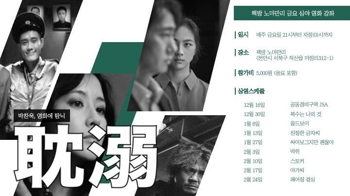 12월 13일 시작한 이 모임은 현재 박찬욱 감독의 영화를 <공동경비구역 JSA>에서부터 <헤어질 결심>까지 필모 순서대로 매주 한편씩 보고 이야기를 나누는 형태로 진행되고 있다. 이번주 1월 13일에 있을 모임에는 <친절한 금자씨>를 볼 예정이다.
