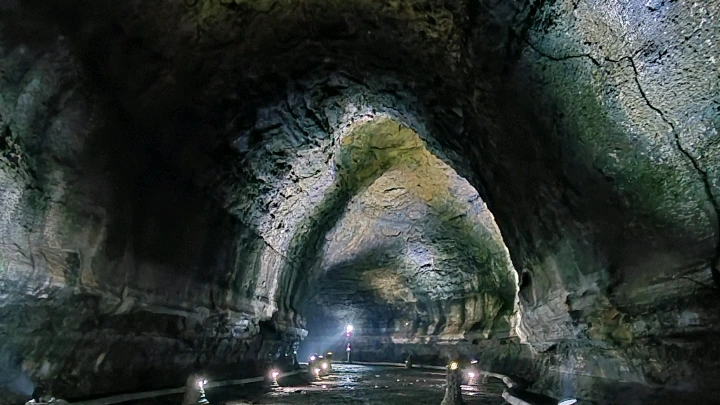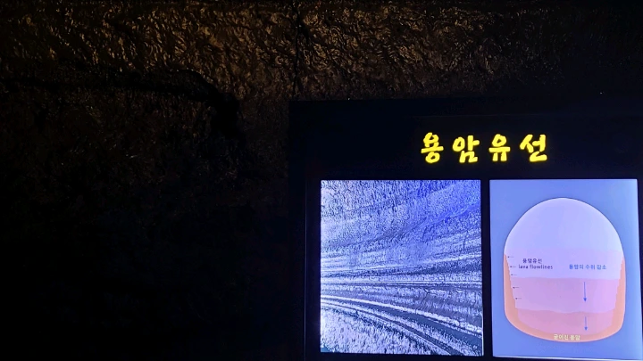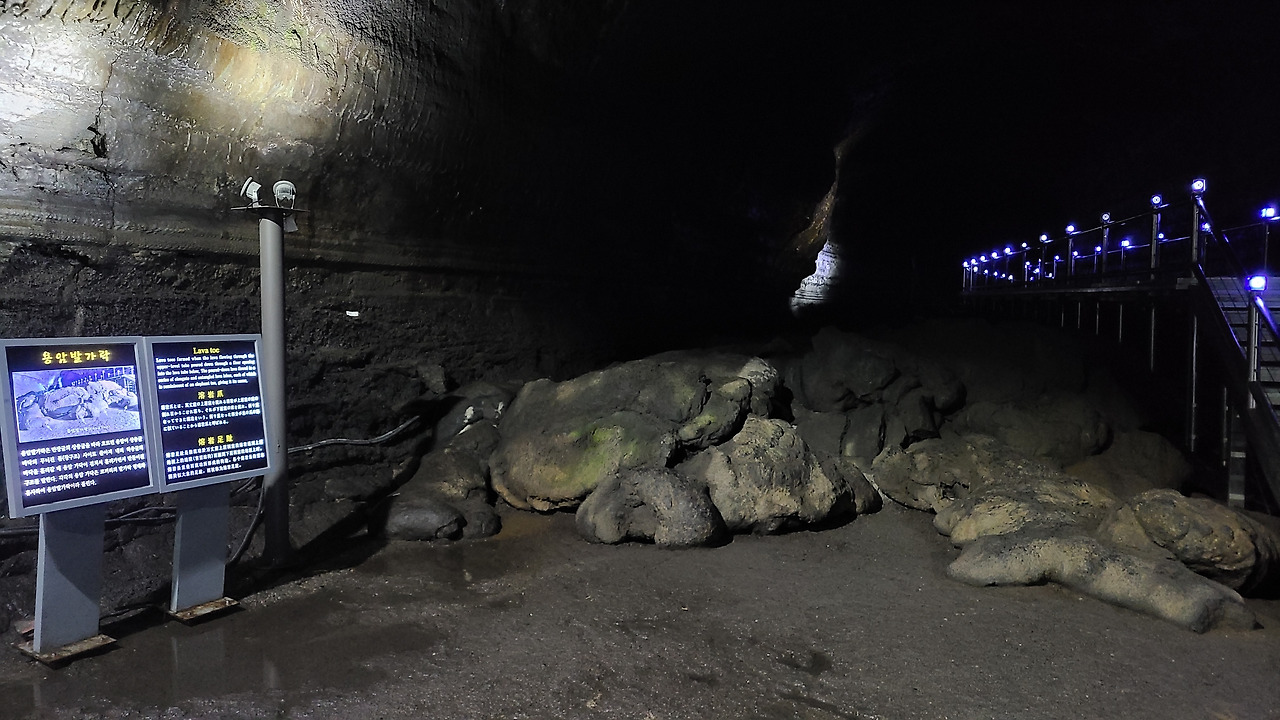 매표를 하고 굴 안으로 들어가는 길은 조금 무섭다. 조명이 어두워 발을 잘못 디딜까 봐, 물에 발이 닿을까 봐, 조심 조심히 걸어야 했다. 몇 분 걷다 보니 곧 익숙해지기 시작했다. 깜깜한 동굴을 계속 걸어가는 데 중간중간 안내 팻말이 있다. 용암으로 만들어진 생성물들과 동굴의 형태 생성 과정에 대한 설명이 있어 좋았다. 모르고 보는 것보다는 알고 보는 게 더 흥미롭지 않은가.