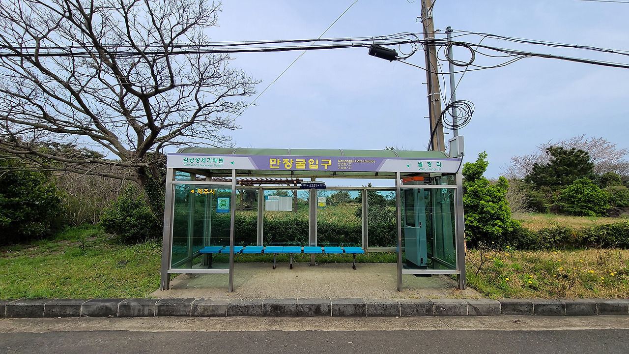 카페 한라산에서 여유로운 시간을 보내고 다시 '해녀박물관 입구' 버스 정류장으로 갔다. 그리고 다시 201번 버스를 탔다. '만장굴 입구' 정류장에 내렸는데, 진짜 입구는 정류장에서 2km 넘게 가야 나온단다. '맞아, 우리 대학교 지하철역도 말이 입구였지. 버스로 20분은 가야 했었어.' 이번에도 속아버렸다.
