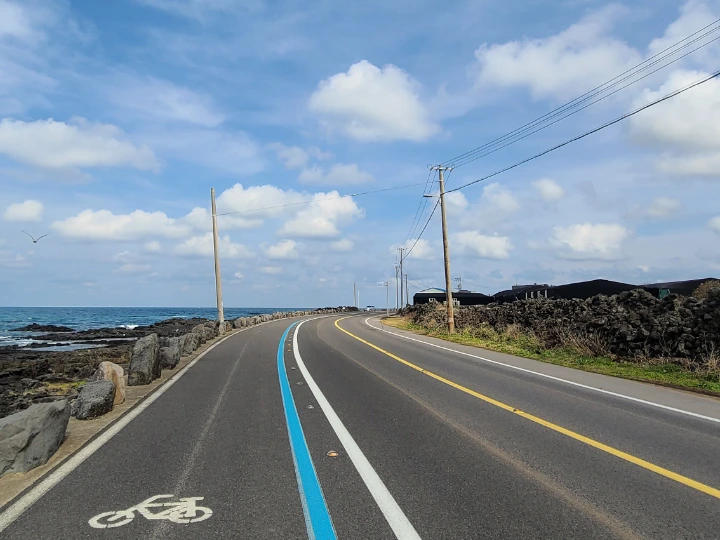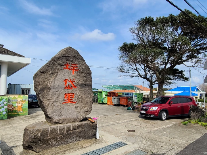 트럭 아저씨가 버스가 자주 다니는 김녕해수욕장까지 데려다주셨다. 너무너무 감사했다. 김녕에서 출발하여 평대리까지 버스를 타고 간다.평대리 버스 정류장에서 내려서 20분을 걸어가며 동네 마을 다 구경하고 난 뒤에 식당에 도착했다.