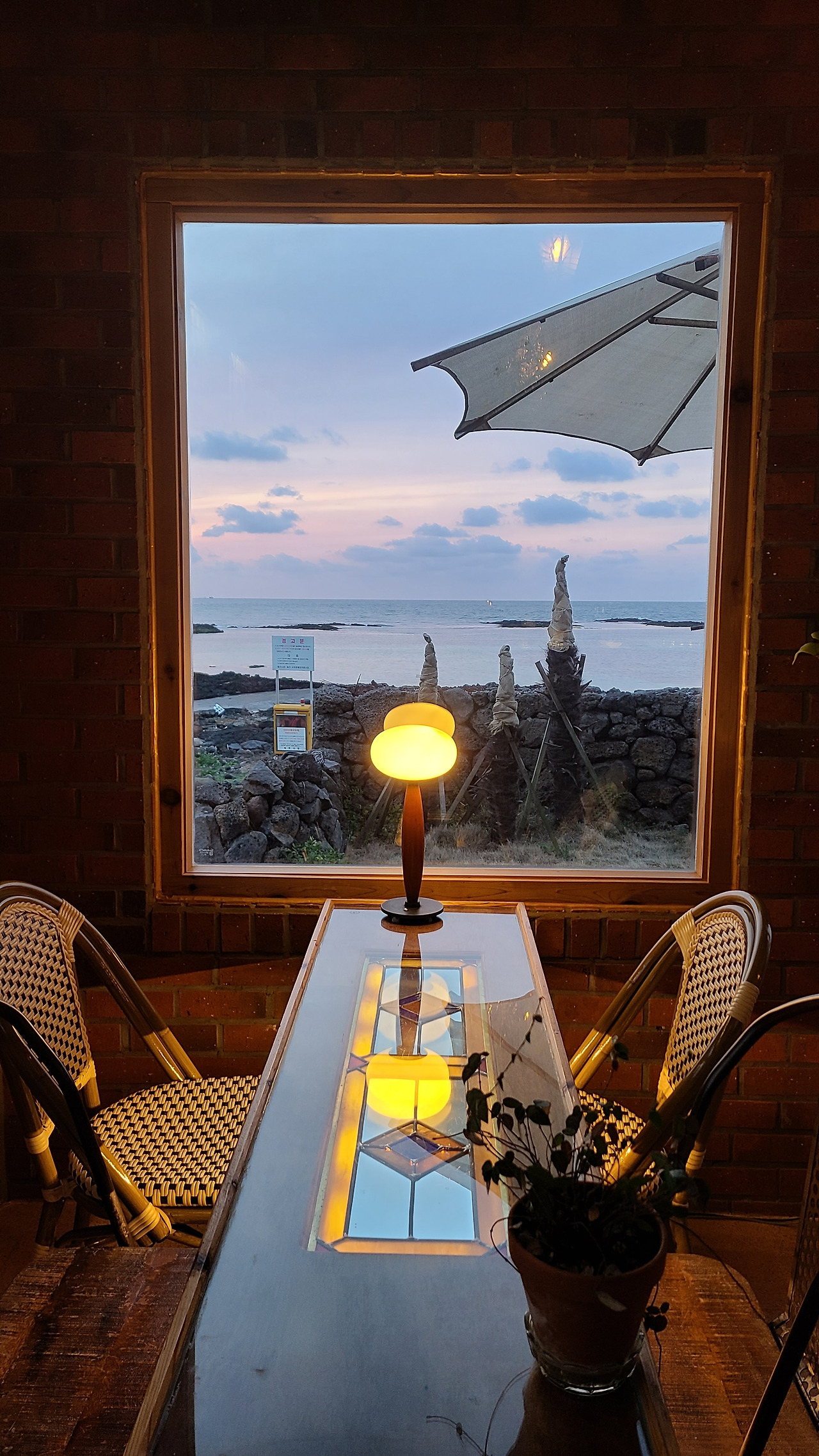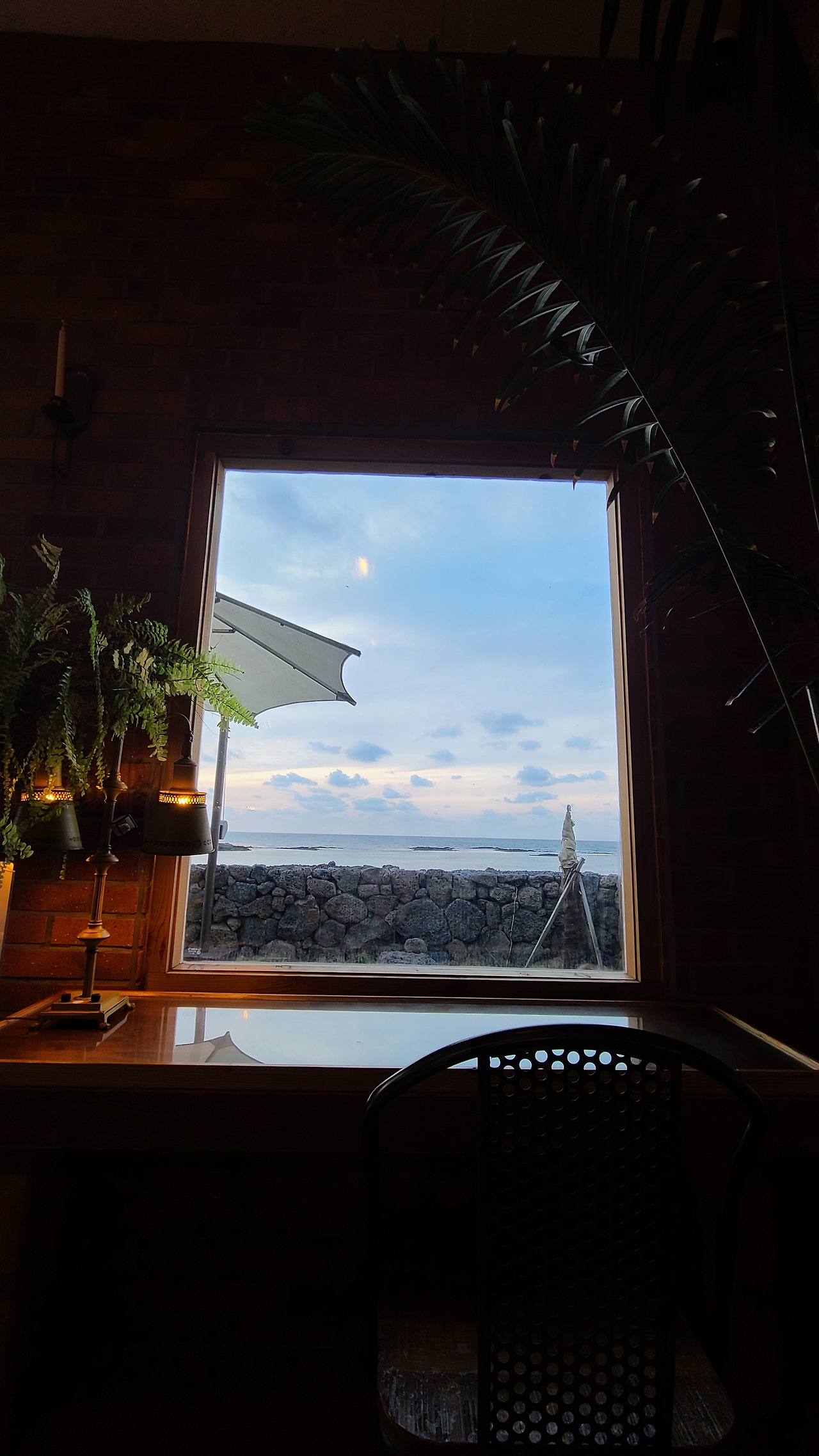 카페에 오기 전 해변에서 '멍 때리기'를 잘 실천하였기 때문인지, 운치가 좋은 이 카페에서 글을 쓰고 싶어 졌다. 해변이 보이는 방향으로 앉아 노트북을 꺼내어 생각 일지를 썼다. 다른 때보다 더 풍성하게 나와 나의 주변에 대해서 생각할 수 있었다. 동시에, 눈을 뗄 수 없는 노을 지는 해변을 보는 일은 포기할 수 없었다. 멍을 때리다가 글을 쓰다 멍을 때리다의 반복이었다.