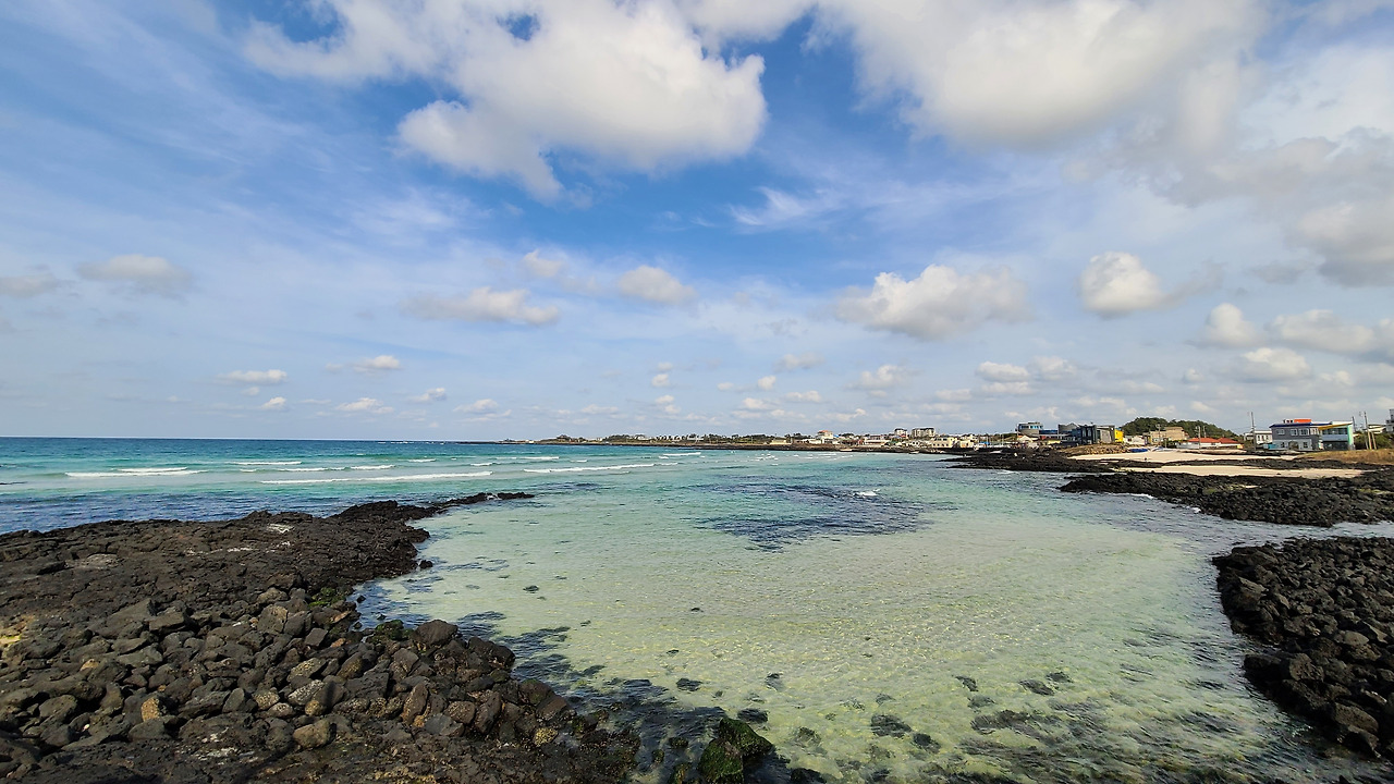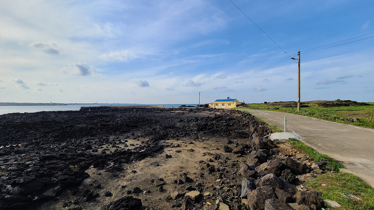 다시 걷기의 연속이 시작되었다. 식당 안에서도 보였던 해변을 따라 형성된 도로를 계속해서 걸어갔다. 시간은 3~4시쯤, 날씨는 덥지도 춥지도 않아 적당히 선선했다. '해변을 걸을 때 들기 좋은 노래'를 찾아서 한 곡씩 한 곡씩 차곡히 쌓아 나만의 플레이리스트를 만들어 본다. '높은 하늘, 에메랄드빛 바다, 그리고 현무암석이 모여 있는 그림' 한 폭에 내가 들어와 있는 듯한 기분이 들 정도로 온통 푹 빠져서 걸어갔다.