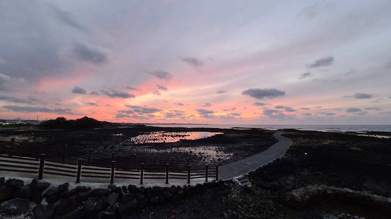 뉘엿뉘엿 해가 져가니 이제 숙소로 돌아가야 할 시간이다. 제일 가까운 버스 정류장까지 다시 걸어갔다. 마침 일몰 시간을 막 지났을 때였고, 바다가 빨갛게 물들기 시작했다. 표현할 수 없는 황홀함, 그 자체였다.