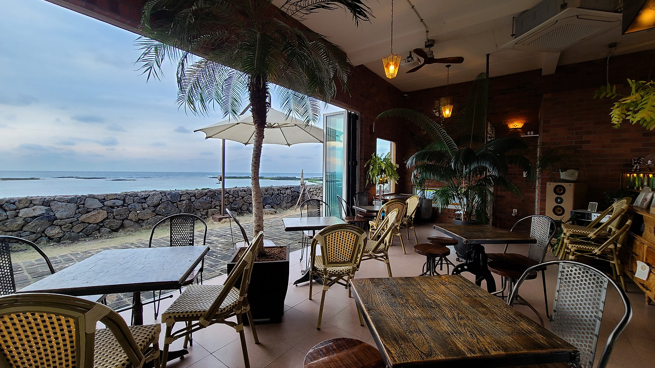 '이곳은 제주도인가? 동남아인가?'를 생각해보게 되는 카페다. 내부는 스테인드 글라스로 꾸며진 창문과 촛불을 닮은 천장등, 그리고 기다란 식물 화분들과 다양한 색깔의 글라스들이 조화롭게 꾸며져 있다. 카페 록록은 하도리에 위치해 있어 세화리에서는 거리가 좀 있다. 대중교통 접근성이 낮긴 하지만, 카페 앞에 바로 주차장이 있으니 운전해서 찾아가면 된다.