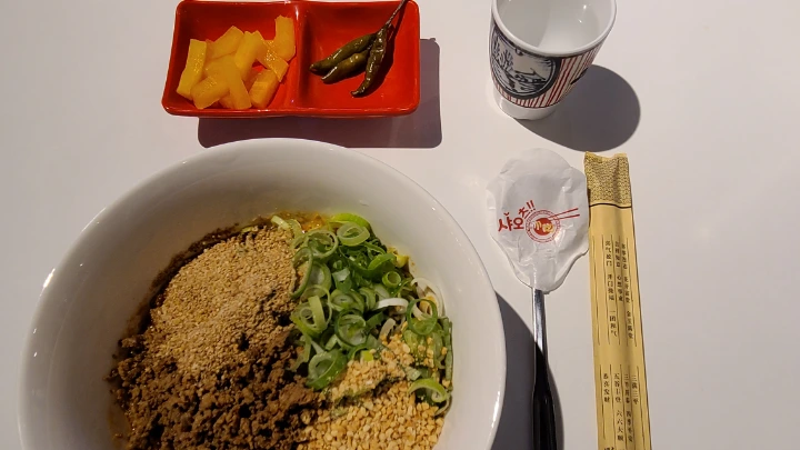 드디어 탄탄면이 나왔다. 내가 먹었던 그 간단한 마장탄탄면 보다 토핑도 많고, 전체적인 양도 많았다. 특히 잘게 썰은 고기 토핑이 무척 많이 들어 있었다. '쓱쓱' 비비는 데만 시간이 오래 걸린다. 수타면은 윤기가 나고 탱탱했다. 파의 알싸한 맛과 마장의 고소한 맛이 잘 어우러진 맛이었다. 이 맛은 지금껏 내가 우리나라에서 경험해보지 못했던 맛이었다. 한국식으로 변형된 중식이 아니라 실제 중식이라서 너무 반가웠고 기뻤다.