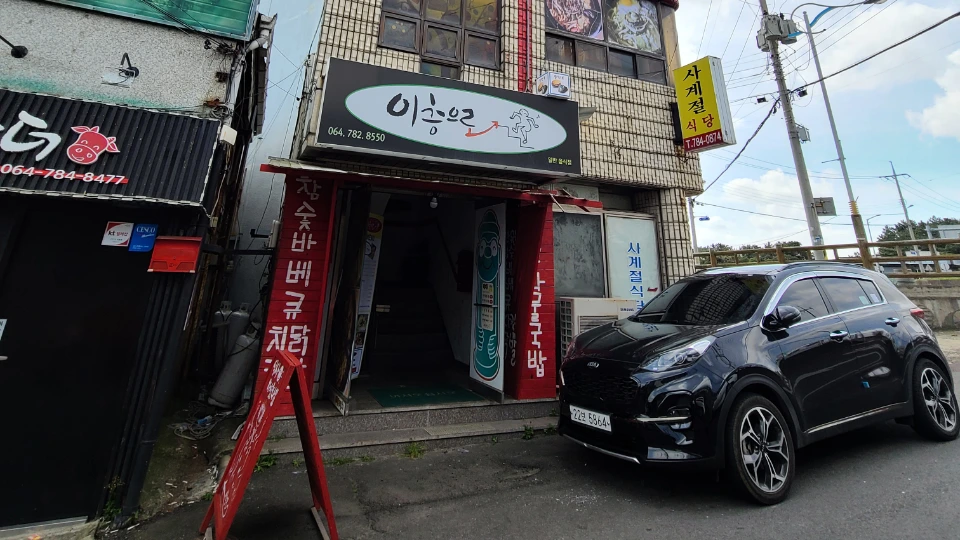 한 5분 정도 헤매다가 우연히 길가에 놓인 빨간 간판을 발견했다. "식사하셨나요?"라고 내게 물었다. '아뇨, 당장 먹고 싶어요...' 고개를 들어 위를 보니 2층에 식당이 있었다. 두근거리는 마음으로 홀리듯이 계단을 올라갔다. 문을 여는데, "땡-땡-땡" 문에 달린 종이 울리는 소리에 깜짝, 뜻밖에 많은 사람들이 앉아 있는 모습에 또 깜짝 놀랐다. 등산복을 입은 아저씨와 아주머니들이었는데, 근처 성산일출봉 일출을 보시고 오신 모양이었다.