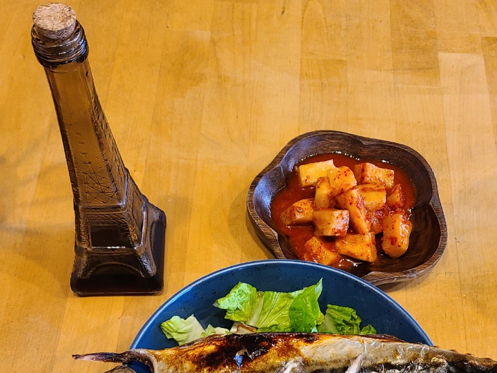 와 - 고등어 덮밥이 나왔다. '에고~ 무셔워~' 고등어의 두 눈이랑 마주쳐 버렸다. 사장님께서 고등어 덮밥 먹는 법을 알려주셨다. 첫째, 잘 구워진 고등어의 뼈를 먼저 바른다. 둘째, 특제 간장 소스를 적당량 뿌리고 당근, 양파, 상추, 그리고 쌀밥과 함께 비벼 먹는다. 내가 요령이 없어서 그런지 고등어 뼈를 다 발라내고 비비기까지 시간이 꽤 걸렸다. (완전히 다 발라먹기엔 무리라서 중간에 살 바르는 거 그만두고 그냥 먹은 건 안 비밀이다.) 특별한 맛은 아니었지만 그렇다고 평범하지도 않은 맛이라고 표현하고 싶다. 재료 본연의 맛이 훌륭했고 특제 소스가 잘 어우러졌다. 뜻밖의 식당에서 오늘 계획한 '맛있는 집밥'을 먹자는 목표를 이뤄서 뿌듯하다.