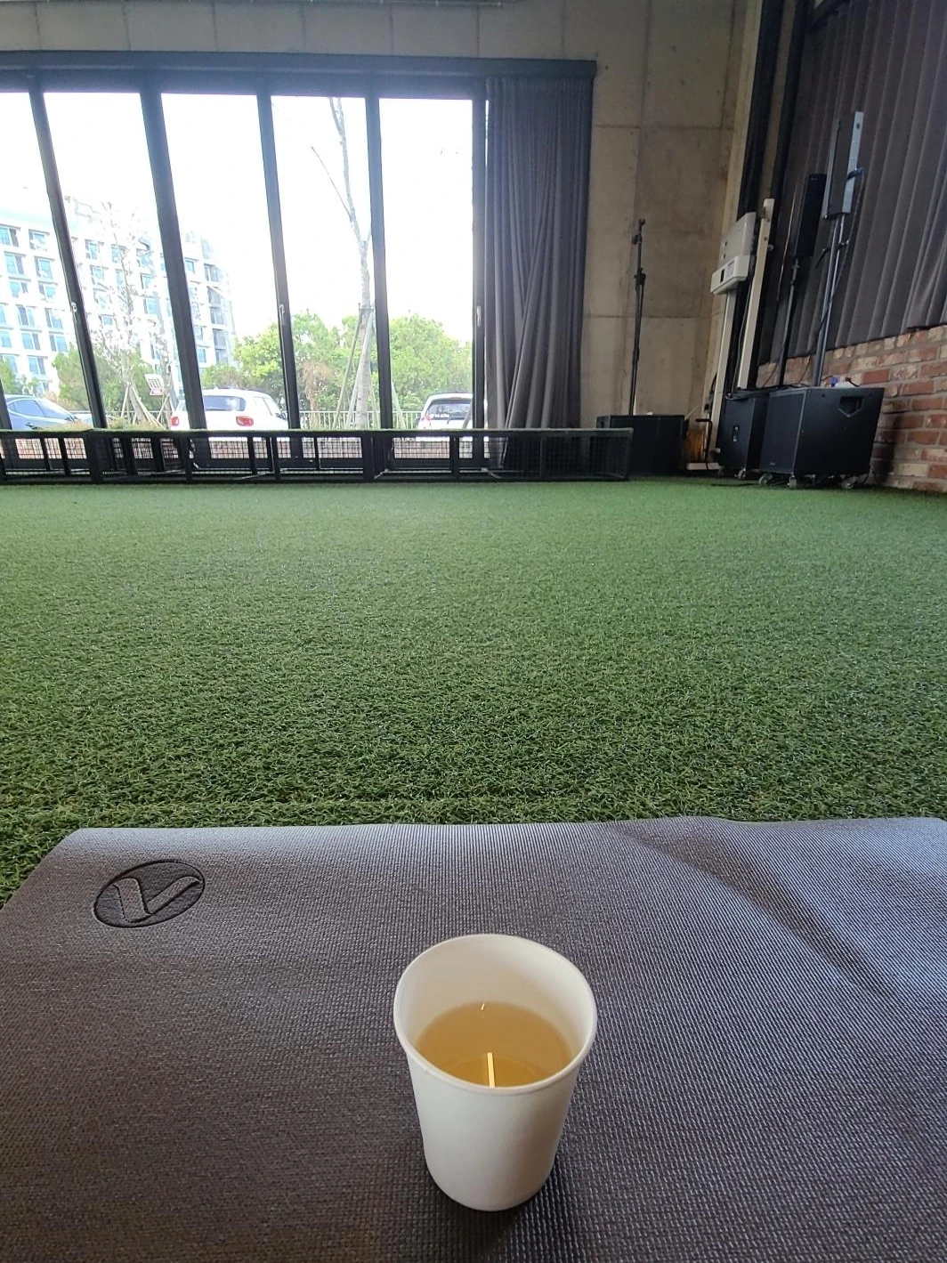 수업은 전면이 유리창으로 되어 있고, 바닥은 잔디로 깔려 있는, 탁 트인 공간에서 진행했다. 뒤에 준비된 매트를 각자 놓고 앉아, 선생님의 차분한 음성과 잔잔한 음악에 따라 스트레칭과 호흡을 했다. 내가 참가한 클래스는 초급 요가라서 간단한 동작들로 구성되어 있었다. 주로 좌우 균형을 맞추어주는 동작들이 많았는데, 평소에는 쓰지 않았던 근육들이 깨어나는 기분도 들고 왼쪽과 오른쪽 몸이 견뎌내는 유연성의 차이도 느껴보게 되어 신기했다. 스트레칭을 마치면 가장 편한 자세로 누워 벽을 바라보고 눈을 감은 채 명상을 한다. 그 시간은 '세상 편하고 걱정 없는 시간'처럼 느껴졌다. 마지막으로 따뜻한 차 한잔을 마시며 수업은 마무리된다.
