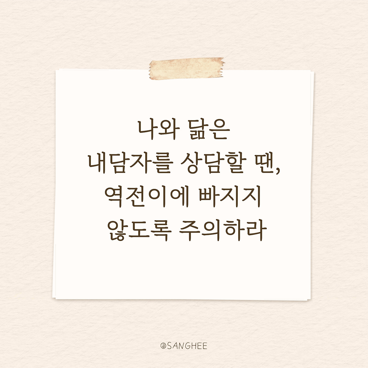 나와 닮은 내담자를 상담할 땐, 역전이에 빠지지 않도록 주의하라.