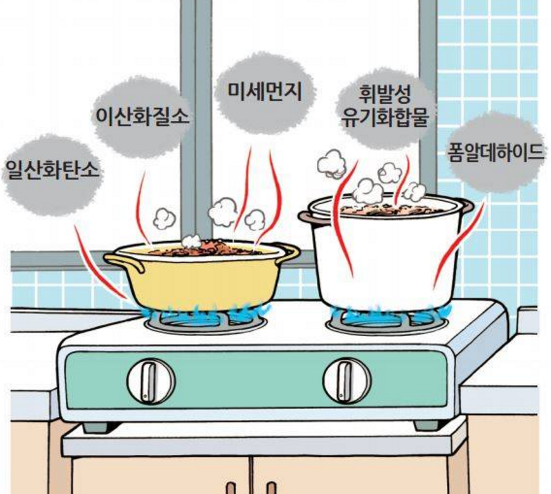 실제로 요리를 할 때 발생하는 주방오염물질들은 담배를 피우지 않는 여성들의 폐암 발병률을 높이고 있다는 통계가 있습니다. (관련링크) 요리할 때 미세먼지 농도는 평상시의 약 70배 가량이 되기도 한다고 합니다. 특히 튀기거나 굽는 기름을 사용한 요리에서 미세먼지는 엄청난 수치더라고요.