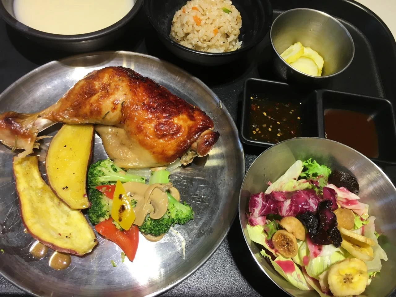 바쁘다 보니 거의 구내식당을 이용하는데요, 회사에 감사한 일은 식당 한 코너에 현미밥코너와 샐러드바 코너가 있다는 것이지요. 매일 다른 푸른 채소들을 그릇 한가득 먹을 수 있어서 점심시간에 주로 샐러드를 듬뿍 먹자하고 있어요.