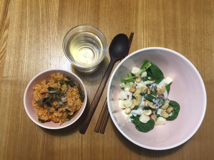이렇게 먹고 잔날은 배는 아주 약간 고프지만, 아침이 너무 가뿐해요. 두그릇이라 설겆이도 가뿐하고.