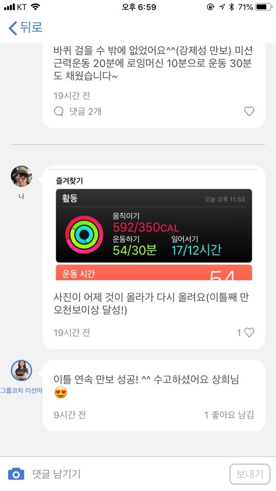 실천한 후에는 꼭 매일매일의 다이어트 로그에 기록을 했어요. 기록은 같이 다이어트 하는 그룹원이나 운동 코치님께 전달되어 일종의 '자랑질'을 하기도 하고, 가끔 인스타그램 같은 개인 소셜에 기록하기도 하는데요, 이것이 저 나름으로는 지속할 수 있는 원동력이 된 것 같아요. 가끔 기록한 것들을 주간 월간 연간으로 펼쳐보기도 하는데, 나름 너무 뿌듯하더라고요.