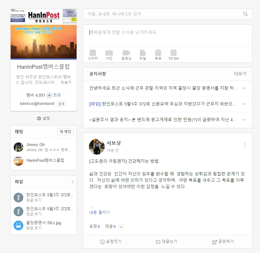 한인포스트는 한인 포스트 밴드를 통해서 뉴스를 확인하실 수 있습니다. 특히 이번 위자야 센터에서 한인들이 어려움을 겪으실 때 한인포스트 정선 대표님이 직접 나서 주시는 모습 교민의 한사람으로서 정말 보기 좋았습니다.