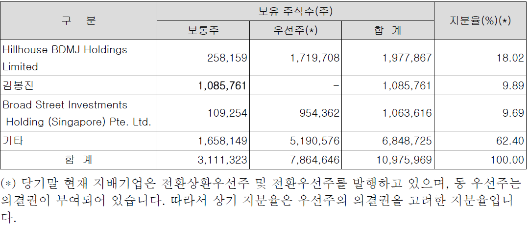 2015년에 보통주는 600%, 우선주는 820%가 증가합니다. 바로 이 때가 대주주가 '김봉진'에서 'Hillhouse BDMJ'로 바뀐 해입니다.