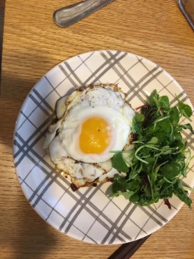 함박스테이크 위에 치즈, 그리구 그 위에 다시 계란후라이. 사실 이걸 먹으면서 내가 과연 내 몸을 위한 걸 먹는게 맞나 싶긴 하지만 일단 방송에 나온 내용을 토대로 2주간 실험해보기로 한 거라서 밀어붙였다.