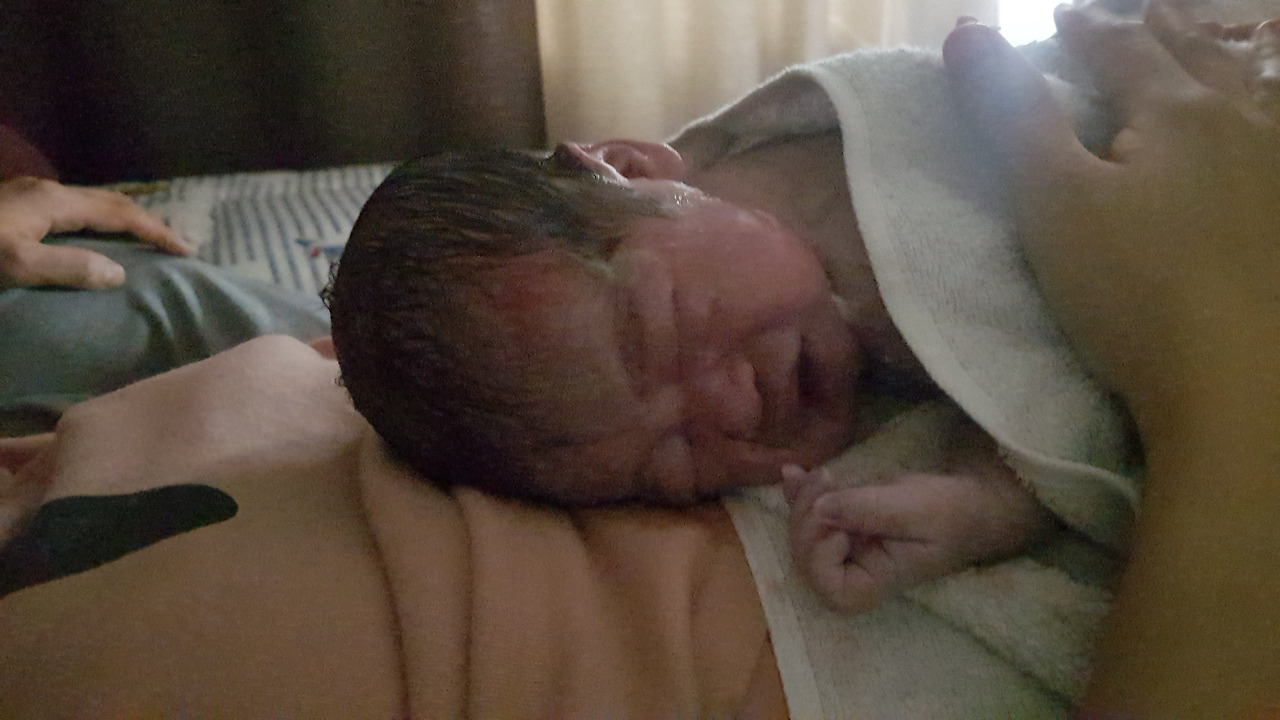 12시 30분경, 내진을 해보니 자궁문은 거의 다 열린 상태였고, 그때부터 디펜드 기저귀를 착용한 채로 앉은 자세로 힘을 주었다. 중력을 이용한 방법이다.