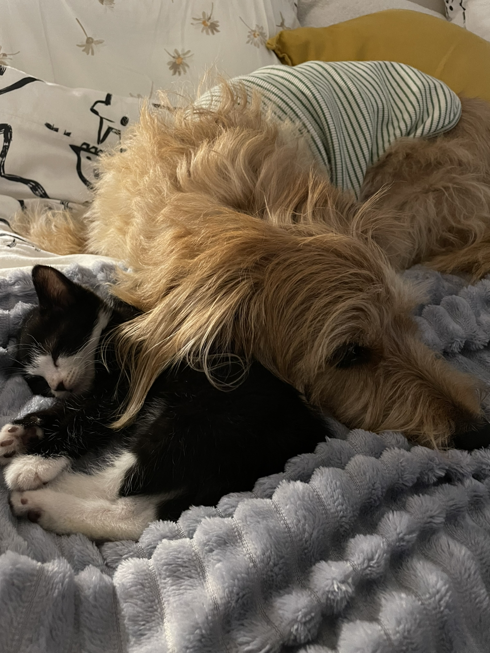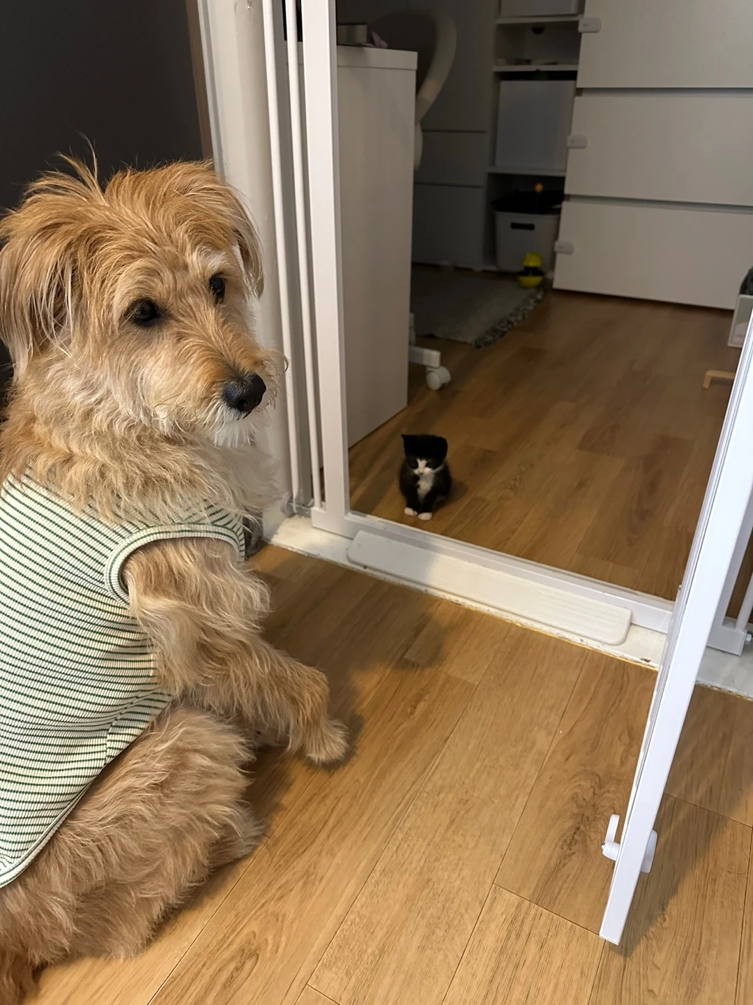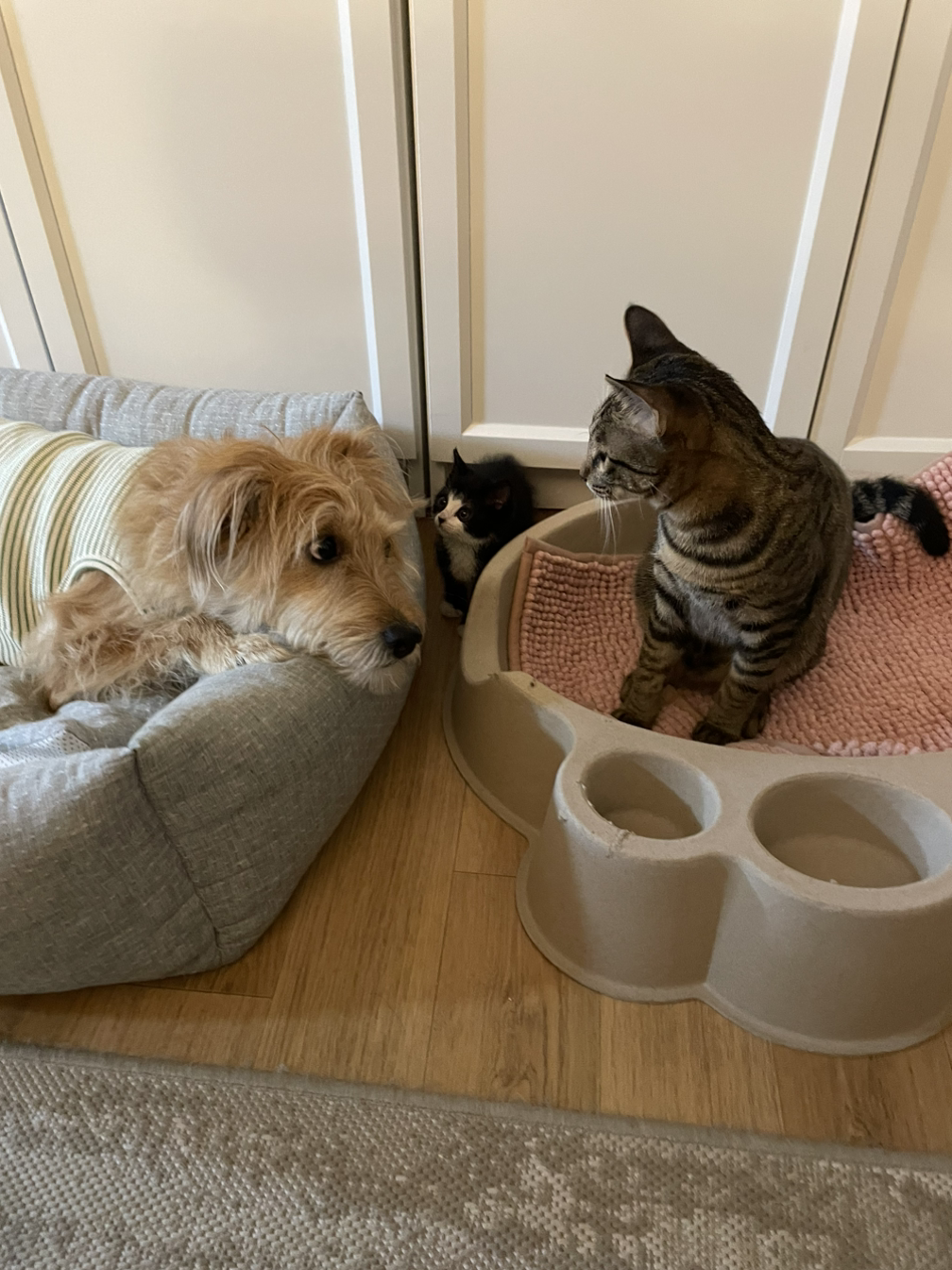 이 아이는 현재 우리 집 따리랑과 매우 잘 지내고 있다. 몇 시간 만에 적응하여 개냥이 흉내를 내고 있다.