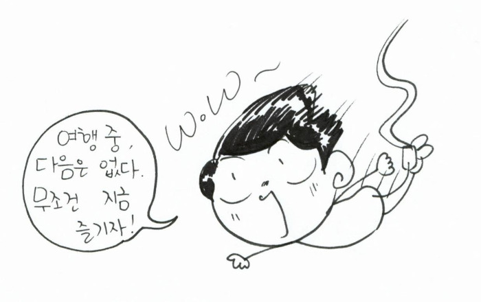 7) 하고 싶은 건 꼭 해야 한다. : ‘다음 기회가 있겠지’라는 생각은 버려라, 여행지에서의 경험은 평생 마지막이라는 생각으로 적극 참여한다. ‘그때 번지점프할걸.’’그때 헬기 타 볼걸’이라고 후회하는 평생 남는다. 그냥 질러라 그럼 최소한 후회는 남지 않는다.