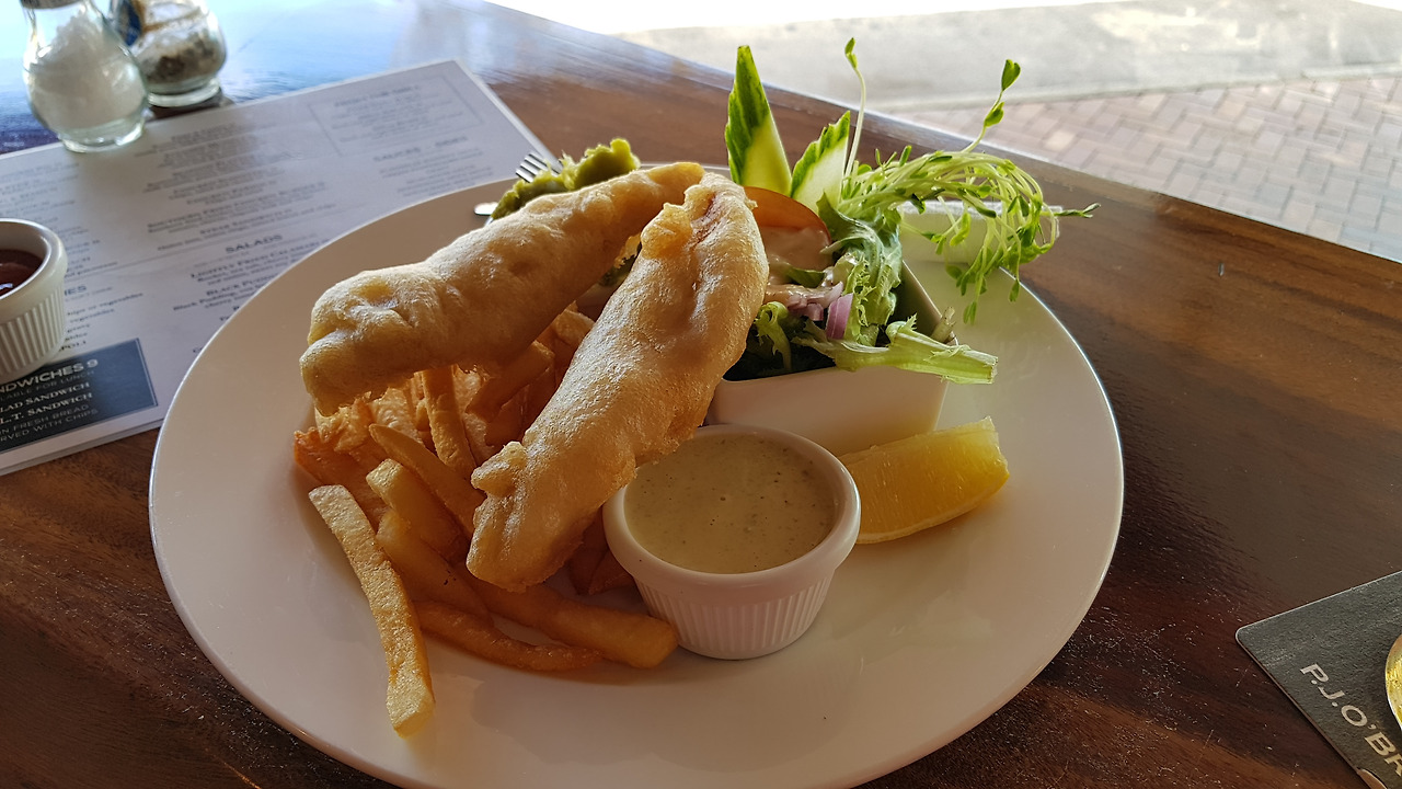식당 사장님에 대한 이야기를 주고받는 사이 피시 앤 칩스와 맥주가 나왔다. 패디스 피시 앤 칩스는 지금까지 먹어왔던 그것과 달랐다. 대부분의 피시 앤 칩스가 헤이크(Hake:대구과 생선)를 재료로 한다면 이 식당의 피시 앤 칩스는 고등어를 재료로 사용했다. 알고 보니 커언즈 주변에 고등어 어획량이 많아 피시 앤 칩스 재료도 고등어를 사용하고 있었다.