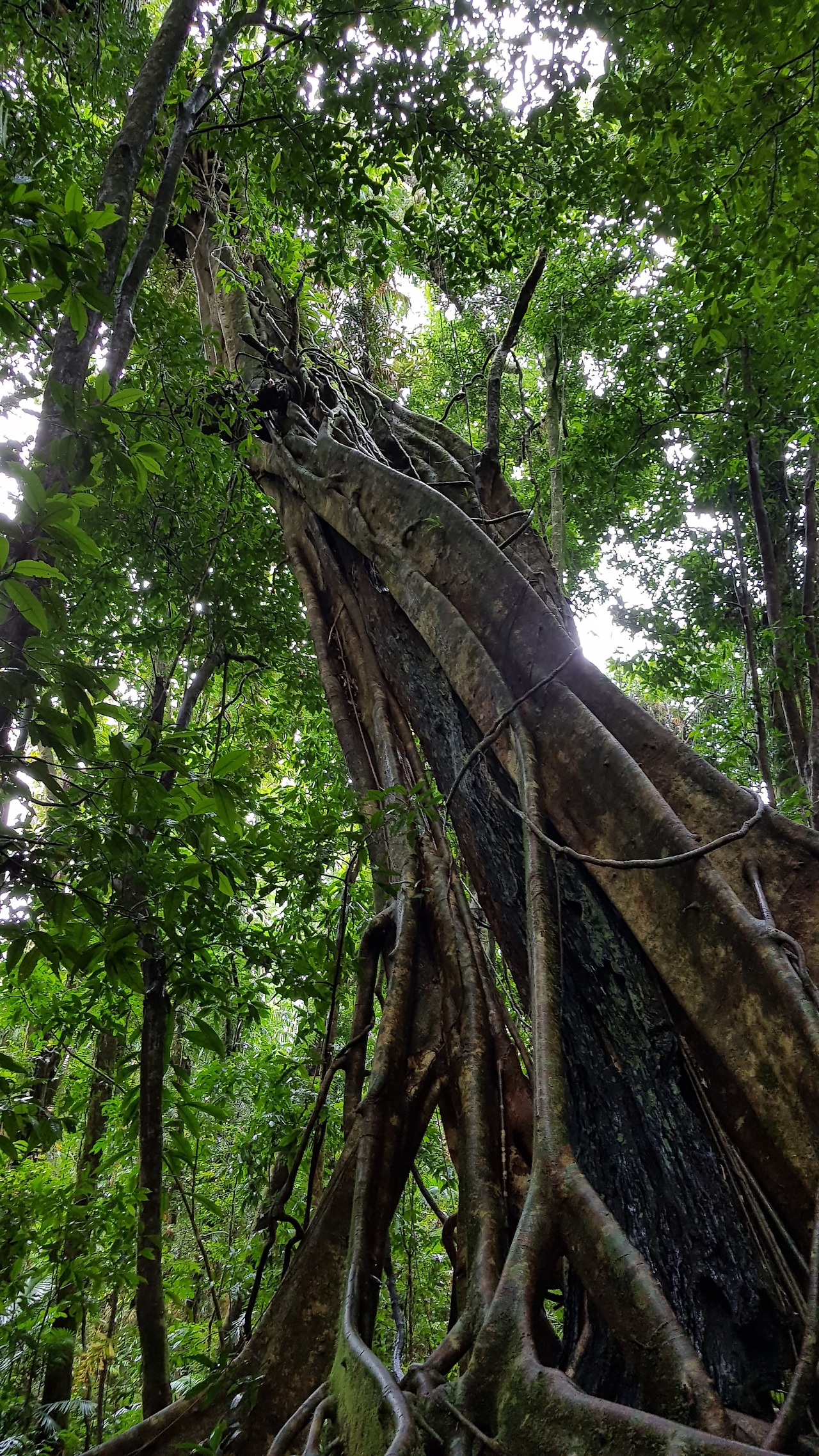 이 지역에 얽힌 전설에 대해 듣고 다시 트레킹을 시작했다. 데인트리 지역(Daintree Region)에 들어서자 지금까지 보아왔던 식물군과는 다른 특이한 형태의 수목들이 눈길을 끌었다. 그중에서 단연 눈길을 끈 것은 거대한 ‘교살자 무화과나무(Strangler fig tree)’였다. 나무의 이름에서 느껴지듯 이 나무는 성장하면서 주변의 식물, 바위 등 모든 물체를 감싸 옥죄고 부숴버린다. 이 나무의 악명을 극명하게 보여 주는 예가 바로 캄보디아의 앙코르 와트 유적인데, 나무가 유적에 뿌리를 내리고 몸통과 가지가 성장하면서 유적지를 감싸 부숴버린다. 피해를 줄이기 위해 나무를 제거하다 보면 유적도 함께 무너져 내리는 경우가 많아 성장 완화제로 파괴 속도를 늦추는 게 유일한 방법이다.